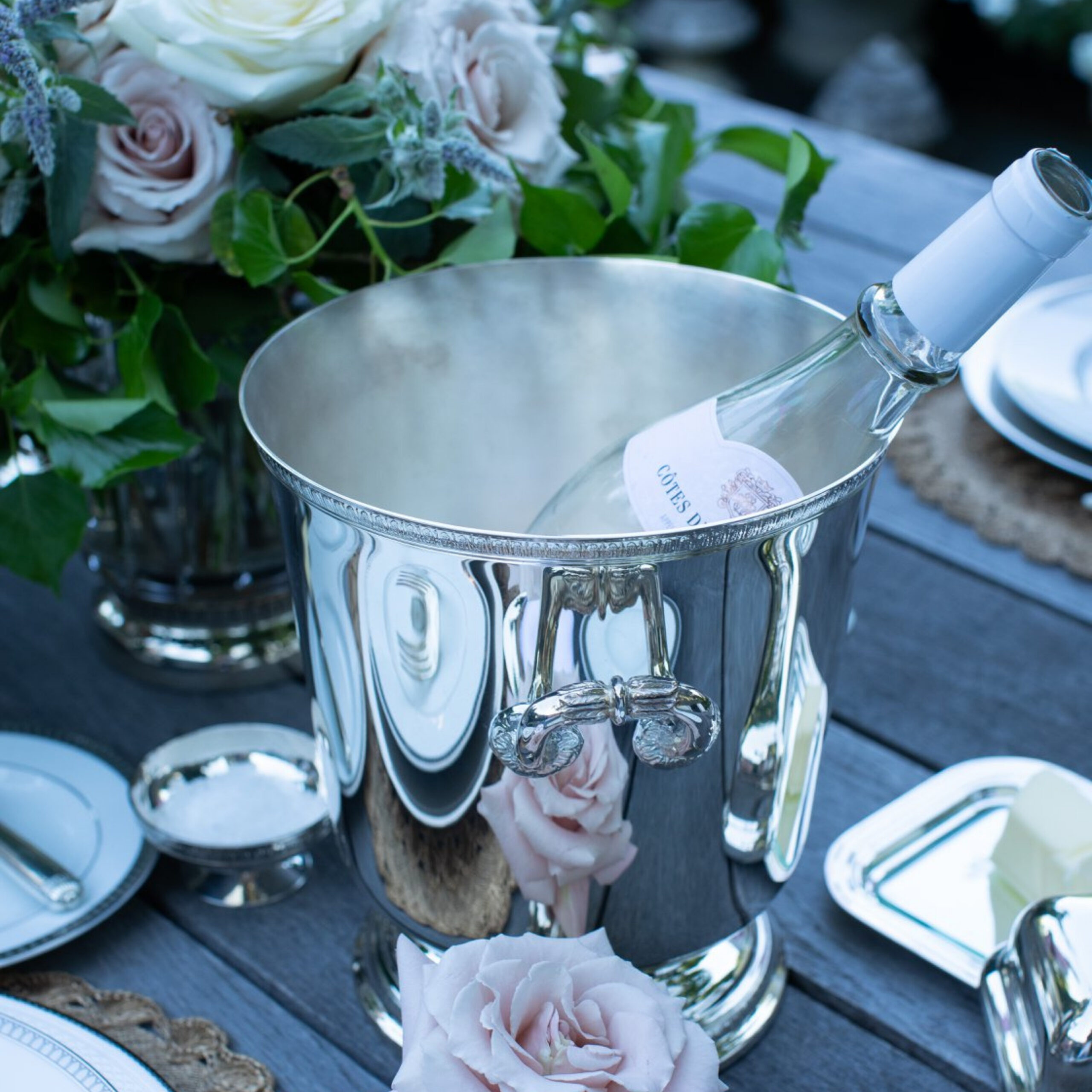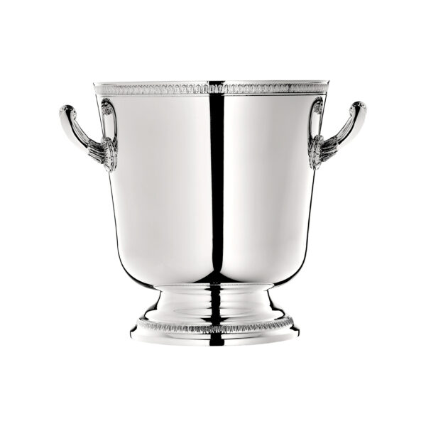 This silver-plated Malmaison ice bucket, with a pedestal base and two side handles, adds refinement to any bar service and makes an ideal housewarming or wedding gift. One of Christofles most historic patterns, Malmaison typifies the Empire style, with its frieze of delicate palm and lotus leaves and symmetrical design. The name is a nod to the Chateau de la Malmaison, a favored Parisian residence of Napoleon Bonaparte and Empress Josephine.