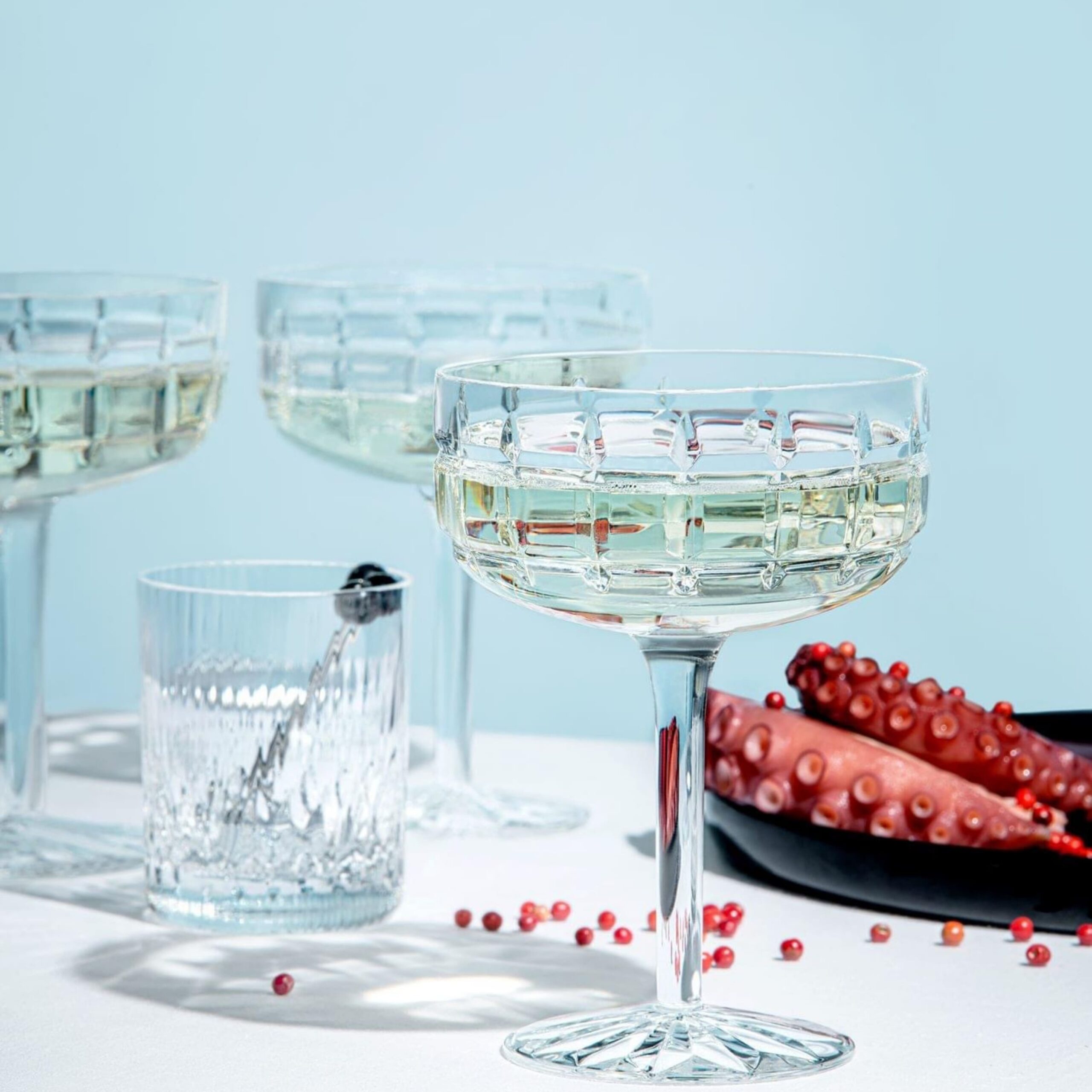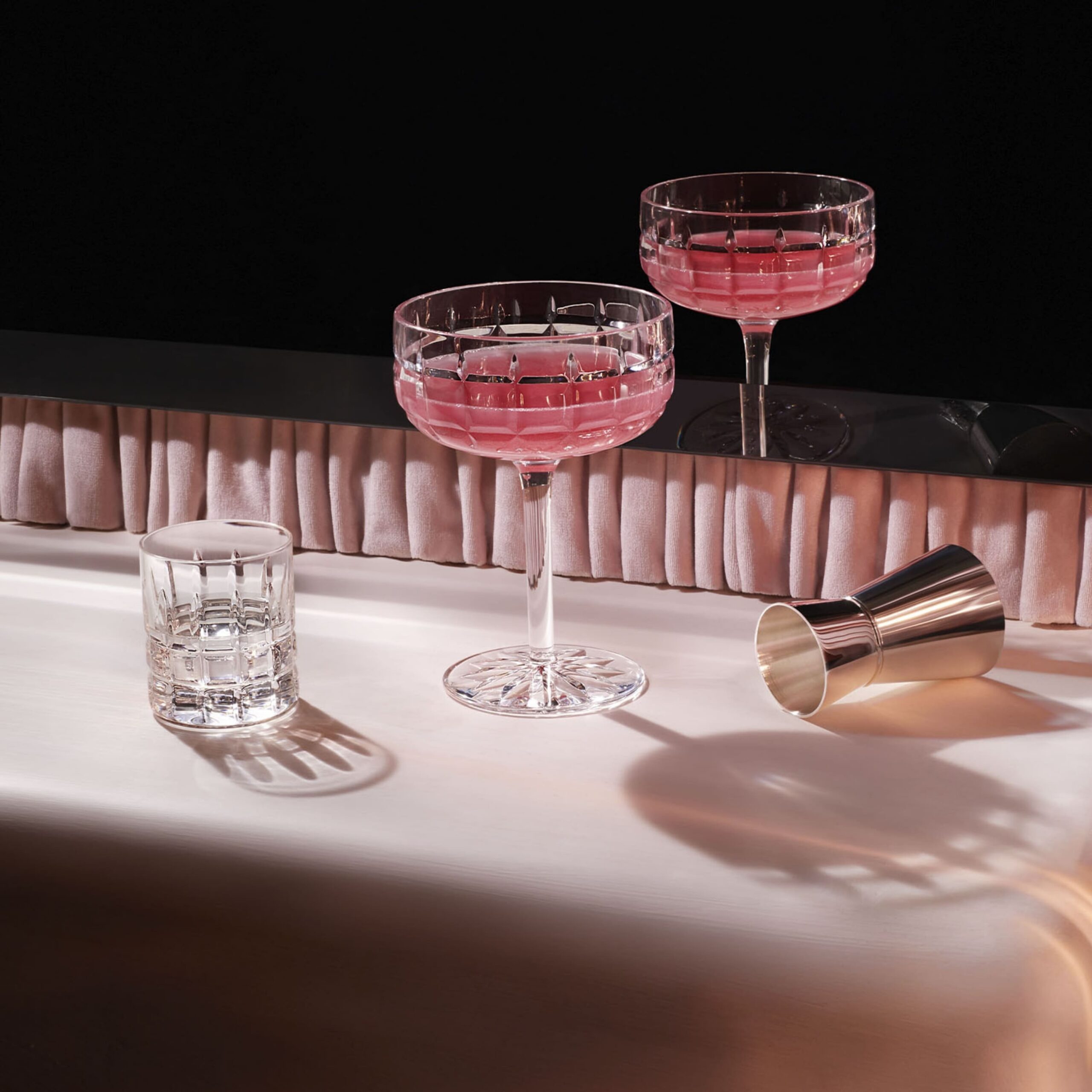 Blend of American inspiration and a French sense of conviviality, Manhattan introduces the spirit of mixology at home. The collection is resolutely modern, embellished with bevel cuts forming an architectural decoration.
