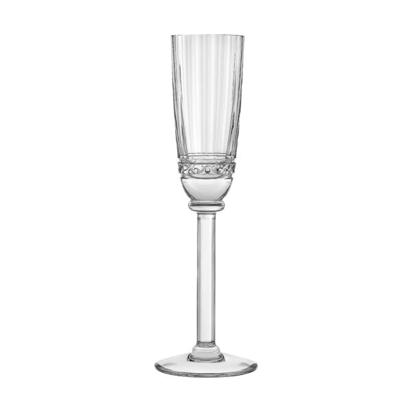 Champagne flute from Iskender collection. The Adage glassware collection by Hermès is cut from crystal in round, full forms, with strong geometric vibrations and jazz as a key source of inspiration.
