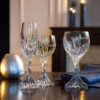 Deep orgue bevel cuts, irradiating from the base, are etched directly into the Clear crystal. The intricate detailing gives the Massena collection a barrel-like appreance and a textural feel. This artful handiwork puts the upper smoothness of the glass in sharp relief. The polished silhouette and prismatic qualities make it worthy of any festive occasion or special soirée.