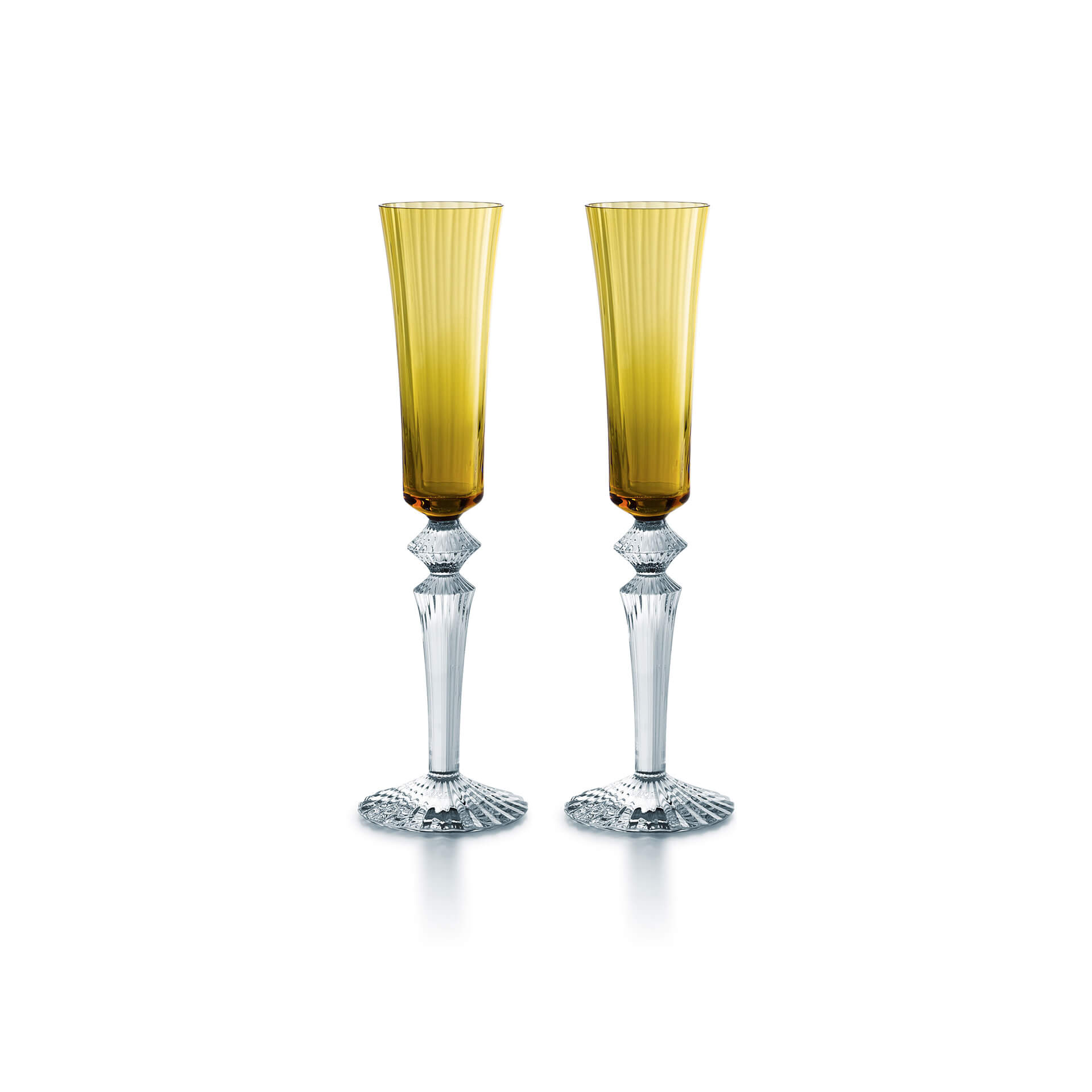Designed by Mathias for Baccarat, the name Mille Nuits is a reference to the 1001 Tales of The Arabian Nights, and to the world of the Orient. The signature of the Mille Nuits set is the elegant diamond-cut center, which sits just between the bowl and the top of the stem. The Mille Nuits collection is also comprised of champagne flutes available in a variety of vivid colors. Within Tableware, the Mille Nuits collection extends to decanters and plates. Within the Home Décor category, the Mille Nuits collection extends to chandeliers, lamps, candelabras.