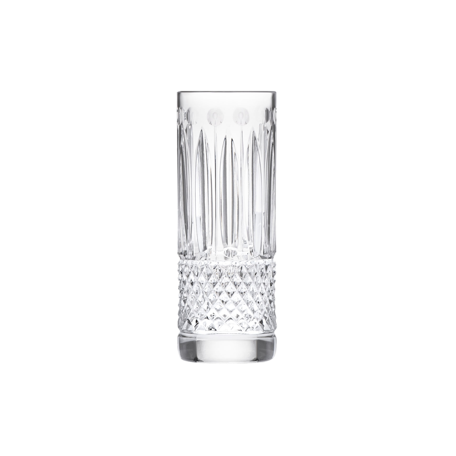 Tommy Vodka glass. From its star-shaped base to the sparkling glints of the diamond, bevel, pearl and rim cuts, Tommy stands as a timeless collection since 1928. Its straight lines have afforded elegance to the most refined interiors, all the way to the Hall of Mirrors at in Versailles. What if the exceptional became an everyday celebration? Tommy spreads out its audacious colors to offer functional new creations for contemporary uses, and reveals a brand-new facet: lighting.