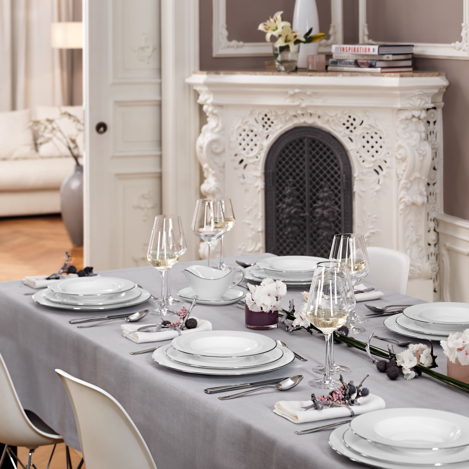 True fine dining. Villeroy Boch offers the ultimate in elegance for every dining table. The timeless Anmut Platinum No.1 and No.2 collections are characterised by a brilliant white and an elegant platinum decor. These attractive and practical dinner plates stand out with their simple elegance and create an exclusive atmosphere for any occasion. Turn every meal into a feast with this piece.