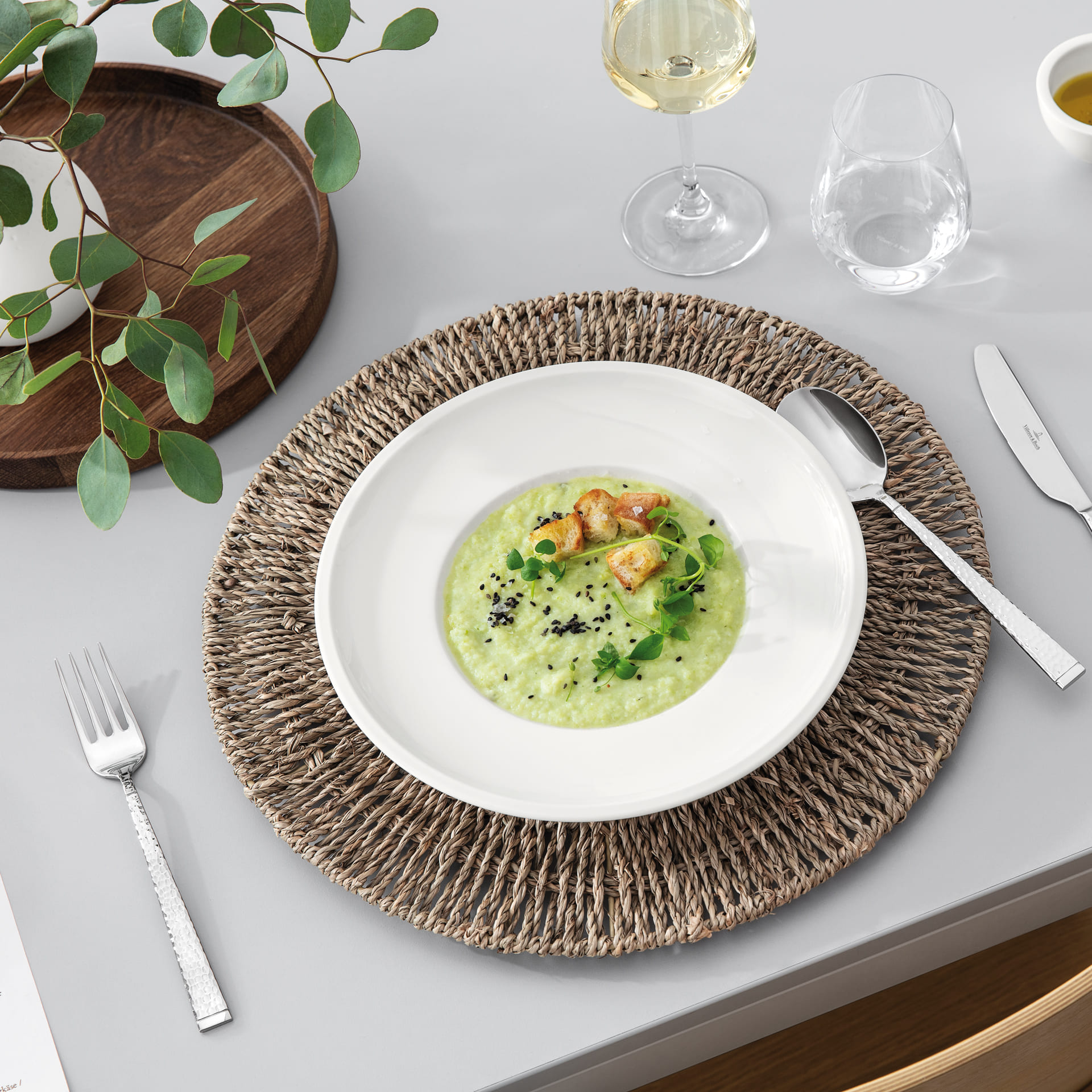 Plate for soups and stews. Perfect craftsmanship and a wealth of emotions: with Artesano Original and the aesthetic combination of Premium Porcelain and natural materials such as wood and slate, Villeroy Boch is celebrating simple and clearly defined design. Stocks, soups or gazpacho: serve the perfect starter in the soup plate. The soup plate is also included in the comprehensive plate set for four people.