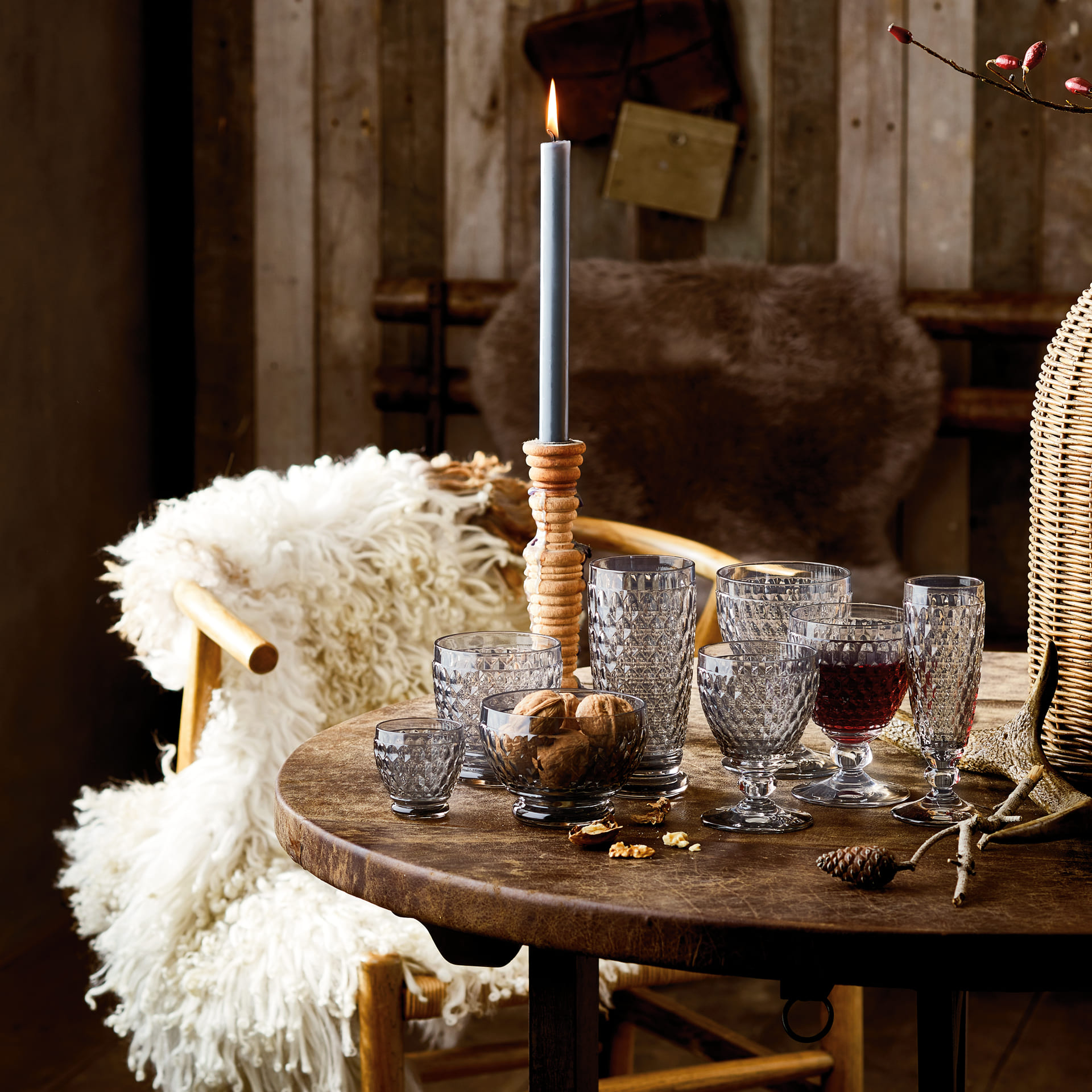 Glasses for every day with sparkling charm. A striking facet design and the robust, high-quality crystal glass make the coloured glasses from the Boston Coloured collection an attractive eye-catcher every day and on festive occasions too. This grey glass lets you serve a cool glass of mineral water, freshly pressed juice or a refreshing beverage with appeal. Quench your thirst in style.
