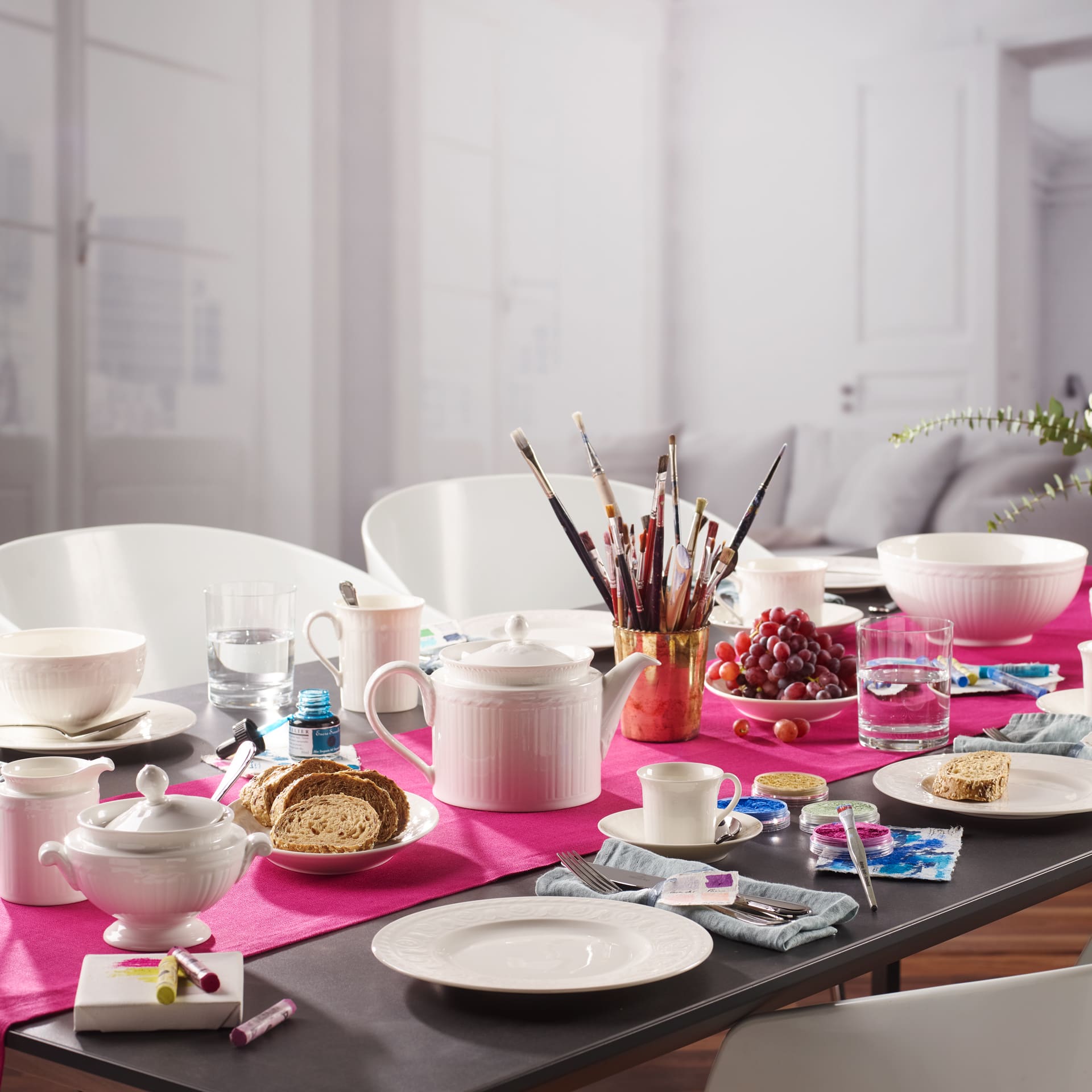 Bread plate for small side dishes. Cellini boasts delicate relief detailing on soft, white shapes, celebrating Renaissance architecture. The collection brings classic elegance to your table with its traditional gracefulness. Whether you prefer a strong farmhouse bread, original Italian ciabatta or oven-warm baguette: fresh bread is simply a part of any meal. Best served on the small plate matching the tableware. Impress your guests with beautiful details.