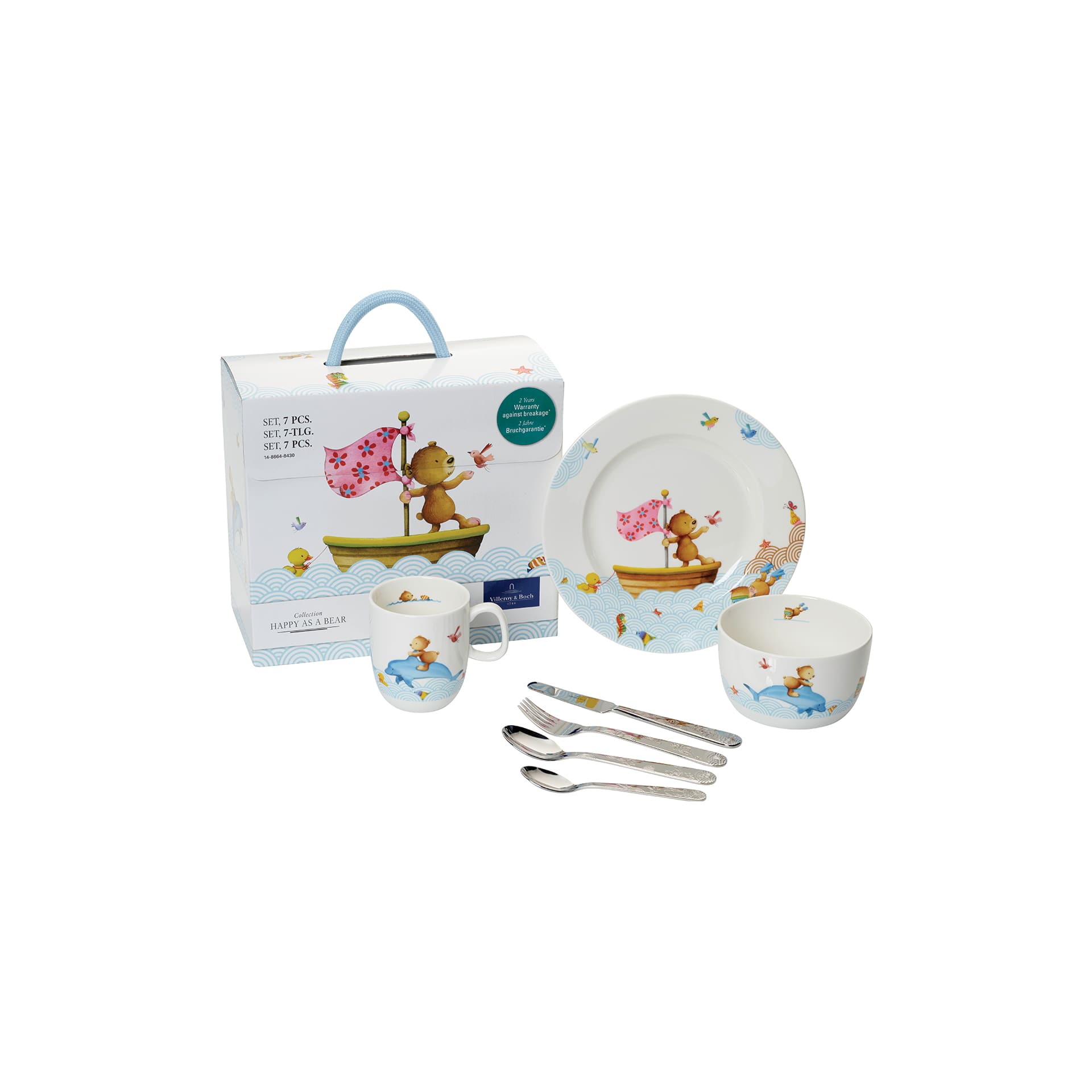 Summer, sun, sand and many exciting adventures: the children’s tableware from the Happy as a Bear collection makes eating twice as much fun. The dolphins and bears are cute little friends for both girls and boys. The children’s 7-piece set consists of one flat plate, one muesli bowl, one practical mug and matching cutlery. You too can turn your meal into a little adventure.