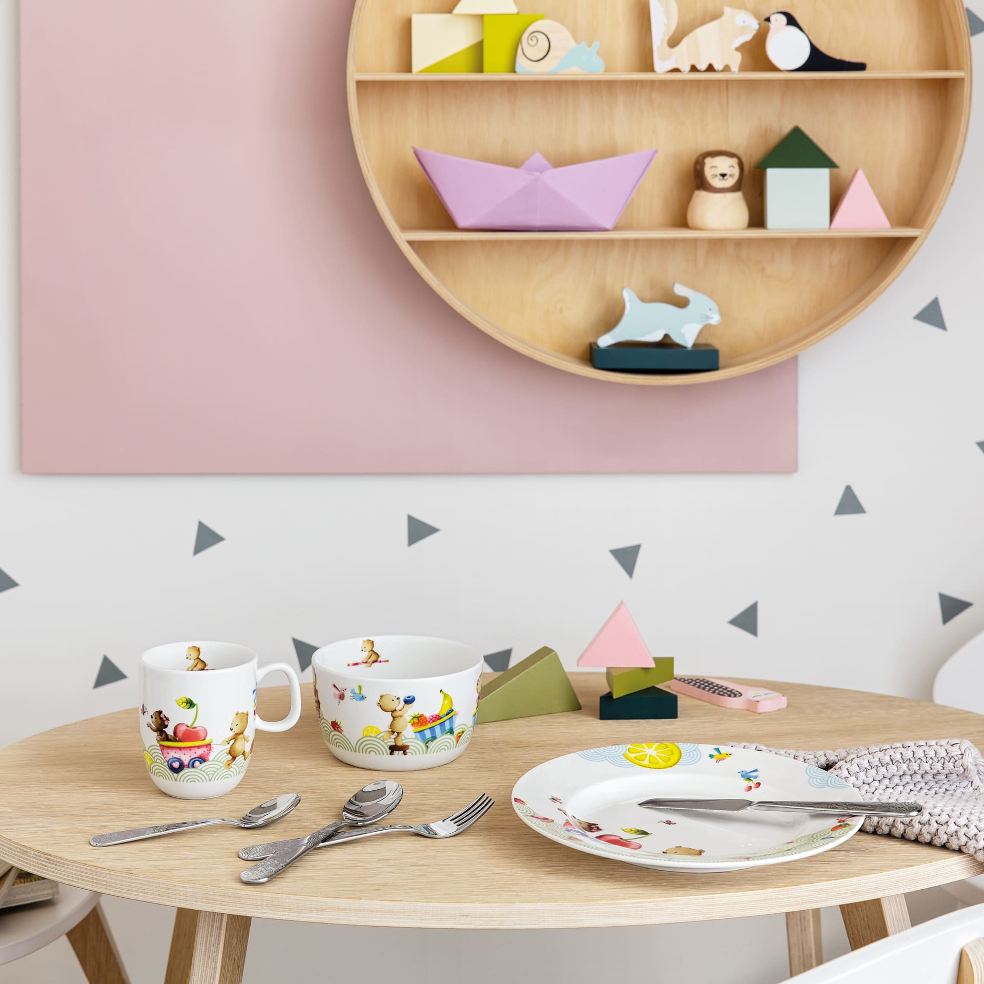Matching cutlery for the childrens crockery. Little exciting adventures: the childrens tableware from the Hungry as a Bear collection makes eating twice as much fun. The cute bears make perfect little friends for both girls and boys. The childrens cutlery set consists of a knife, a fork and a small and a large spoon. You too can turn your meal into a little adventure.