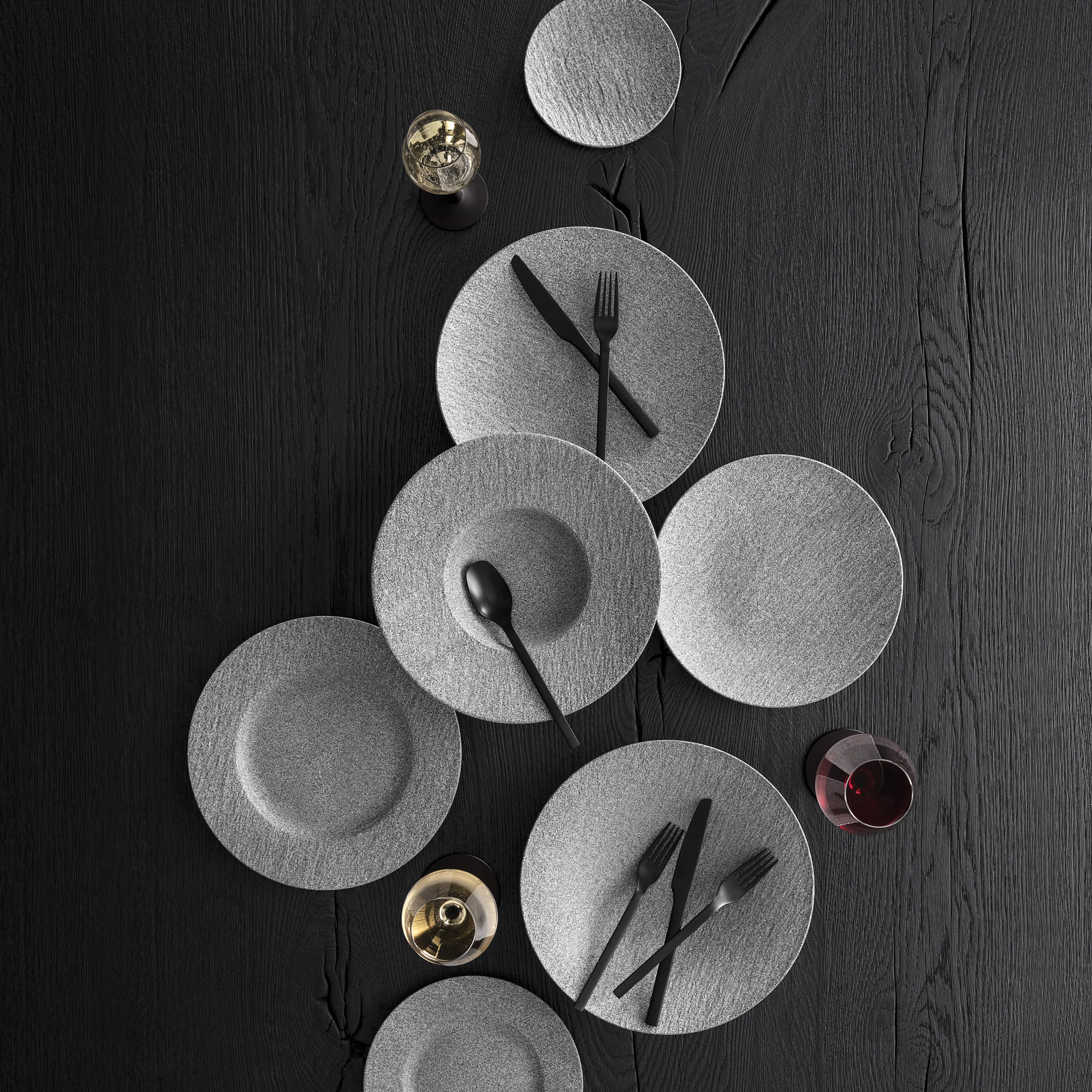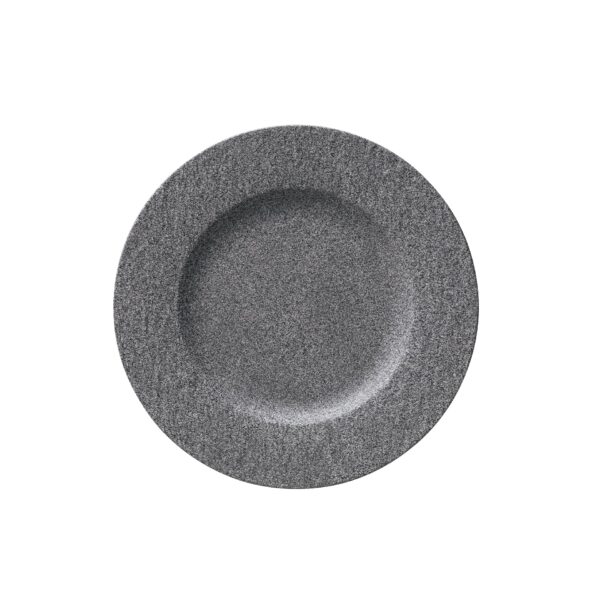 Original rimmed plate for lunch and dinner. Natural, original and with a special feel: this is Manufacture Rock. The artisanal style in the form of matt slate- and granite-looking porcelain makes the collection truly special. A unique feature of the collection is the special production method, in which the entire porcelain mass is dyed through. This versatile dinner plate with an offset rim and a grey granite look from Manufacture Rock can also be used to serve fruit or pastries. Bring the trendy natural look to your table.