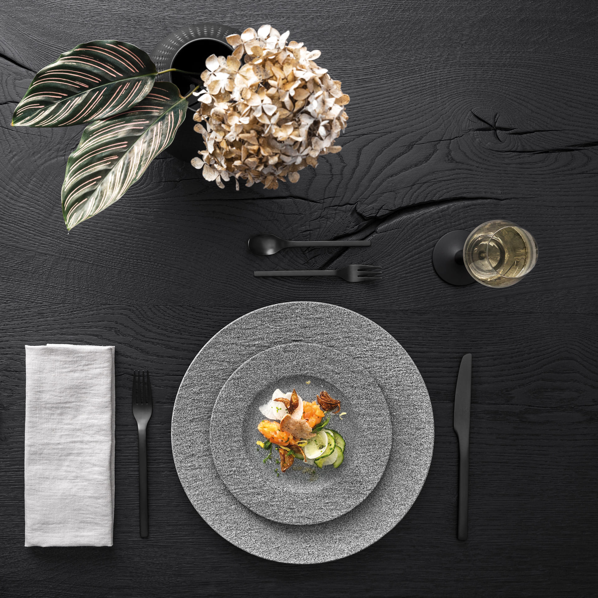 Original plate for breakfast and with coffee. Natural, original and with a special feel: this is Manufacture Rock. The artisanal style in the form of matt slate- and granite-looking porcelain makes the collection truly special. A unique feature of the collection is the special production method, in which the entire porcelain mass is dyed through. Warm croissants or fresh fruit: morning treats taste even better when served on this grey granite-looking breakfast plate from Manufacture Rock. Bring the trendy natural look to your table.