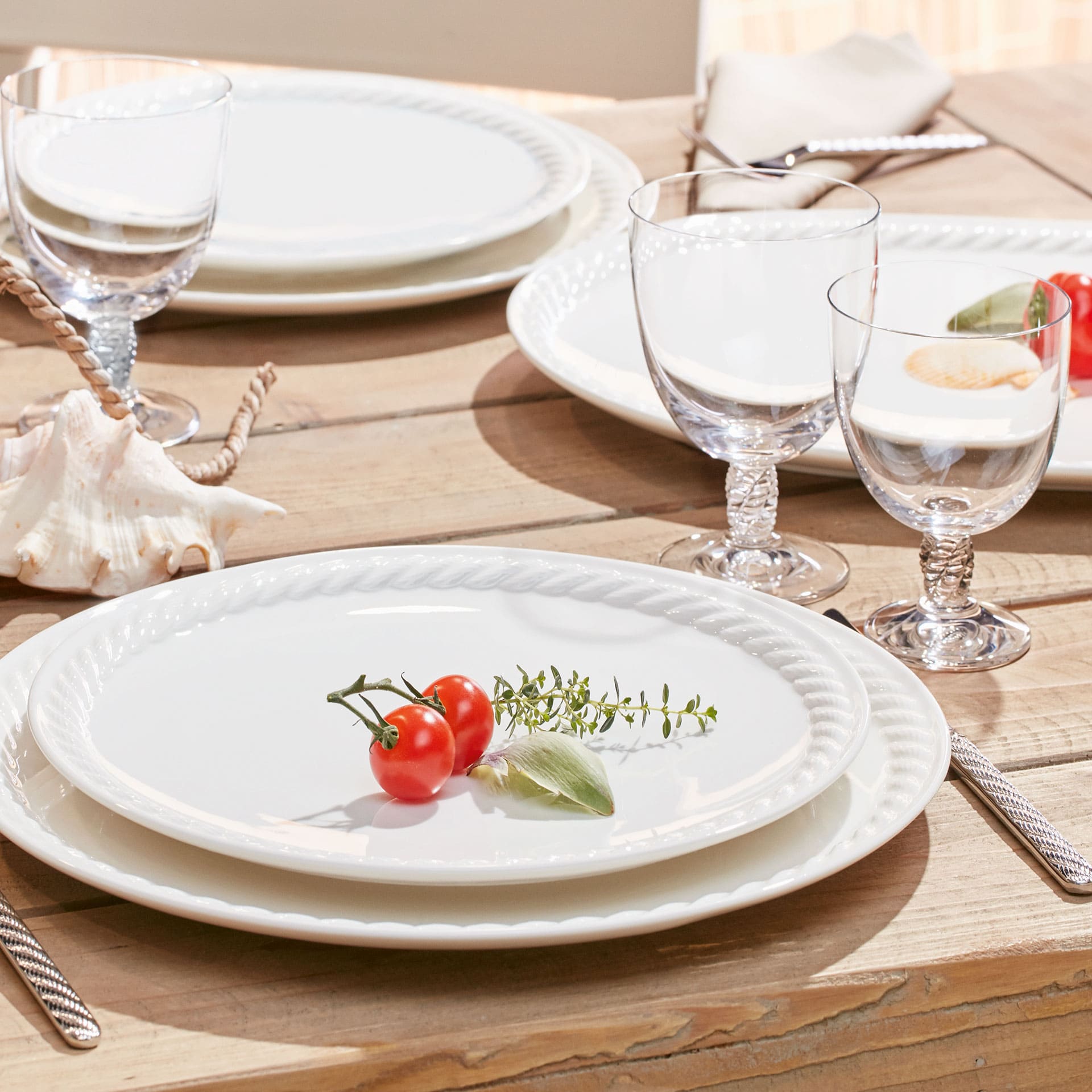 The crystal glasses match the Montauk crockery collection and look very sleek and natural. The relief shaped like twisted rope makes the glass very easy to handle. Whether a cosy meal for two or a relaxed evening with friends: bring the coast to your table every day with Montauk. The large tumbler is perfect for water, juice, iced tea and punch. Complement your porcelain tableware with matching glasses from Villeroy Boch.