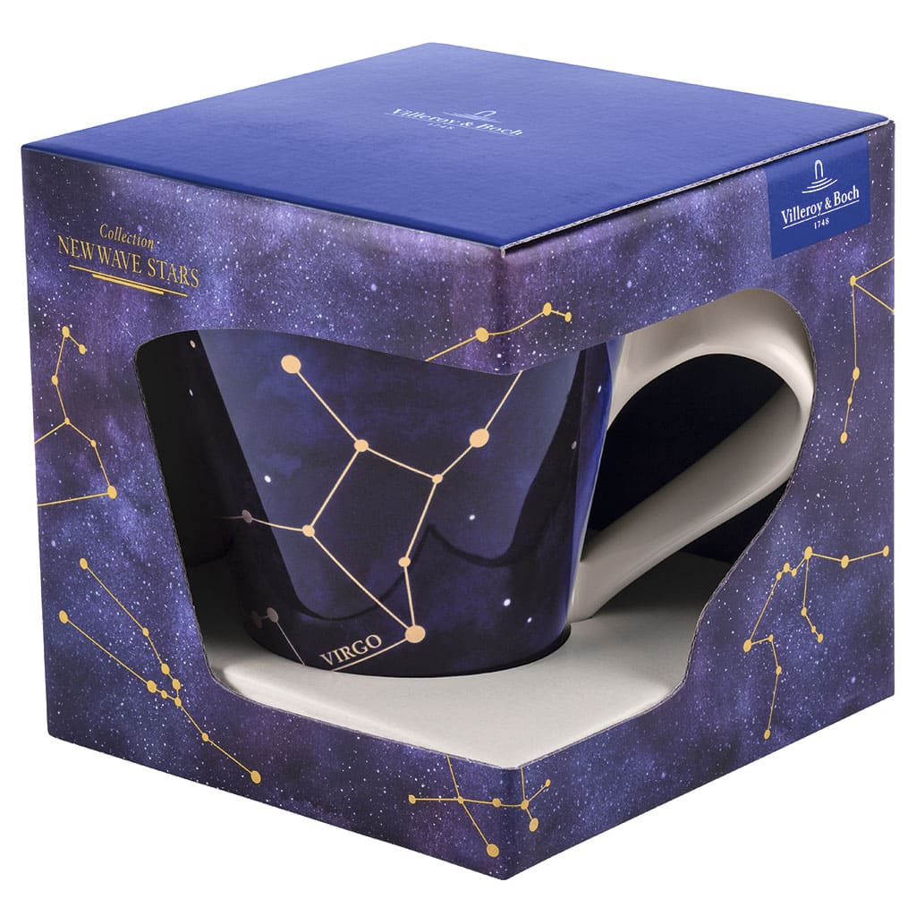 Our NewWave Stars collection is under a lucky star. Give the finest porcelain bearing the zodiac sign of your loved ones, friends or colleagues or simply treat yourself to some heavenly delight. This stylish mug shows the zodiac constellation of Virgo. The gold motif looks delicate on the artistic blue night sky. Reach for the stars!