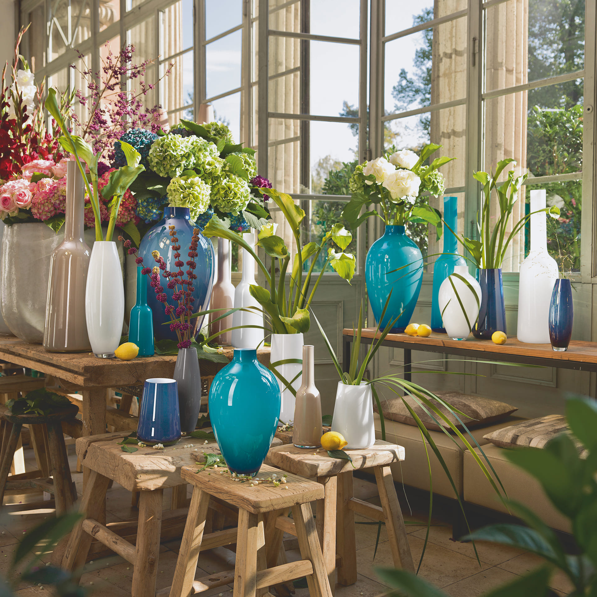 A softly curved square silhouette formed by hand from four layers of sparkling lead-free crystal makes this range of vases from Villeroy Boch an artfully chic home for fresh flowers and other display objects.