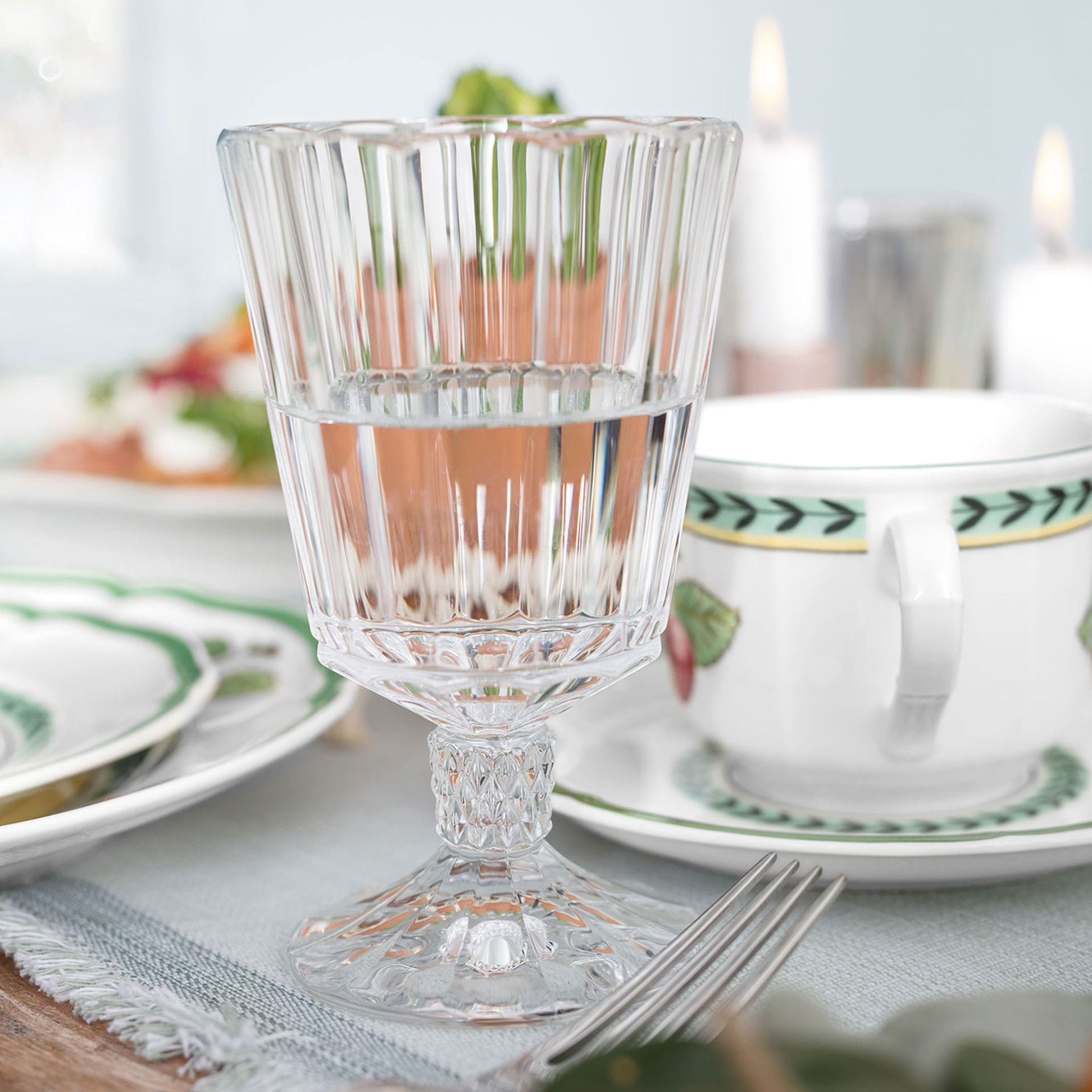 The stylish Opéra glass collection from Villeroy Boch gives designs from the roaring twenties a new lease of life. Whether clear or in a trendy smoke tone, the classically shaped glasses are perfect for elegant occasions as well as everyday dinner. These elegant water goblets with a cut-glass look add a touch of exclusivity to your stylish table. Turn your dinner into a stylish affair with elegant glasses.