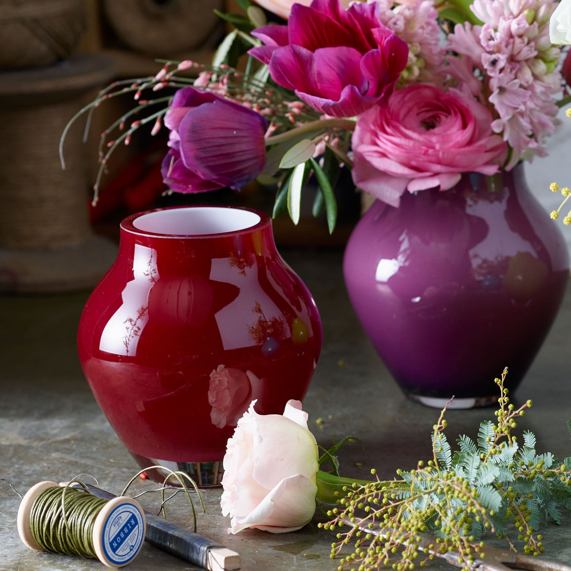 The hand-blown Oronda Mini vases, which can be mixed and matched with each other, come in seven colours and are perfect for letting flowers speak. They come in a beautiful grey gift box. Style, design and elegance make this vase truly special. Add the finishing touch to your decoration.