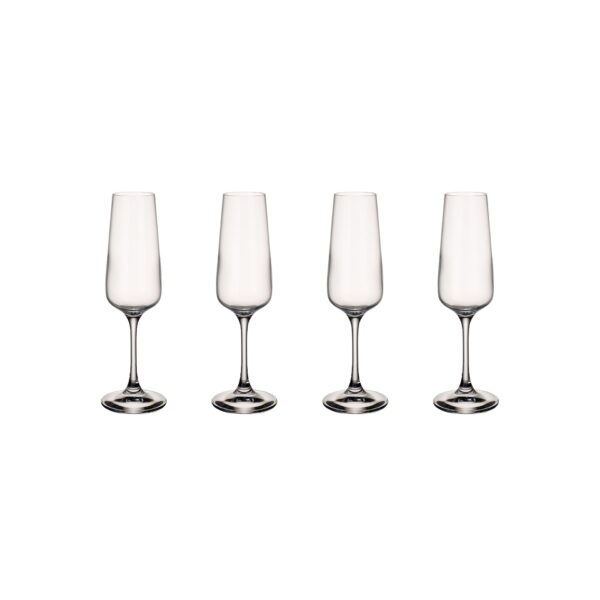Glass set for sparkling wine. The Ovid glass collection stands for simple and classic design. Its timeless appearance makes the range perfect for most occasions and furnishing styles. The wine and water glasses are appealing especially for novices and first homes. No party is complete without a glass of sparkling wine. Fine sparkling wine tastes twice as good with the champagne glasses from the Ovid collection. Invite your friends to enjoy wine in style.