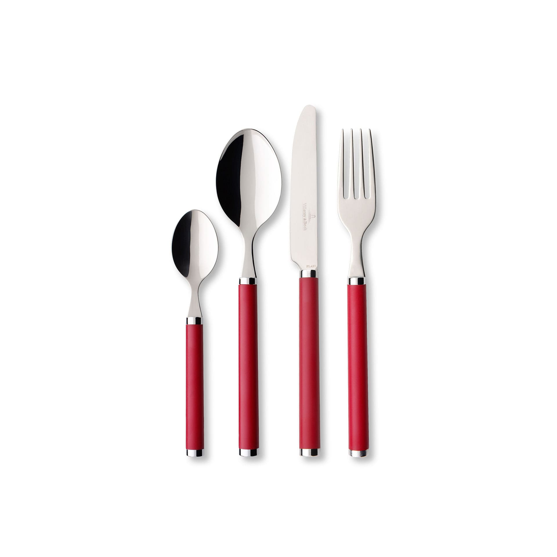 Play! is the perfect cutlery for every day. The fresh design of the collection, made from high-quality stainless steel and with coloured plastic handles, is a perfect match for country style tableware in white or with colourful patterns. Play! adds a beautiful splash of colour to your table. The 30-piece cutlery set for 6 people in red is perfect for any occasion, from everyday meals with the family to festive occasions indoors and outdoors. Enjoy delicious delicacies with cutlery in fresh colours.
