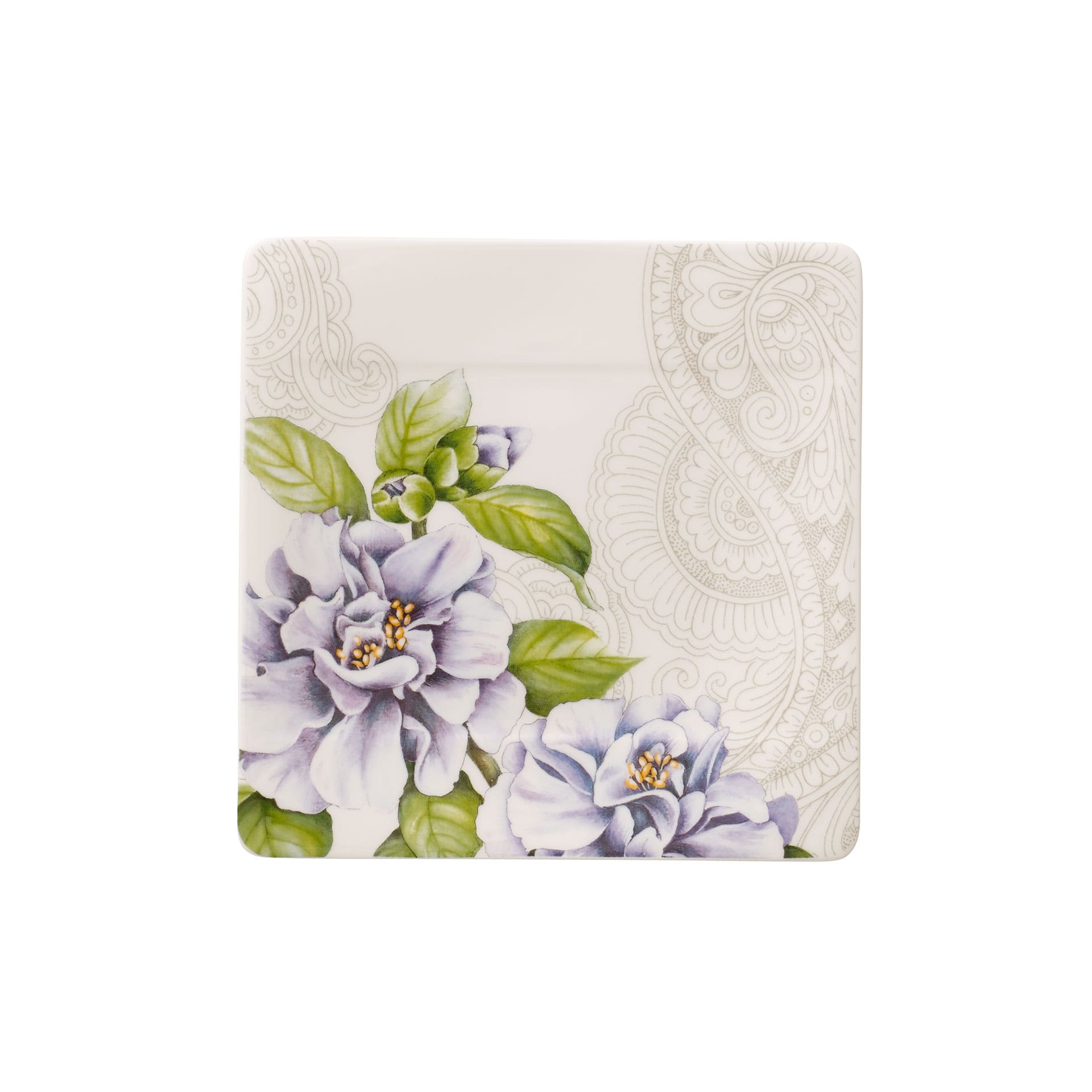 Step into the mysterious world of the Orient with Quinsai Garden. The Home decor follows the trail of Marco Polo on his travels through India and China. Combined with an Indian paisley pattern, the exotic floral sea of peonies, camellias, chrysanthemums and magnolias pays homage to his favourite city of Quinsai, now Hangzhou. Oven-warm bread is the perfect companion for soups, salads and finger food. This plate is a charming way to serve bread and even snacks or sweets. Making small side dishes great.