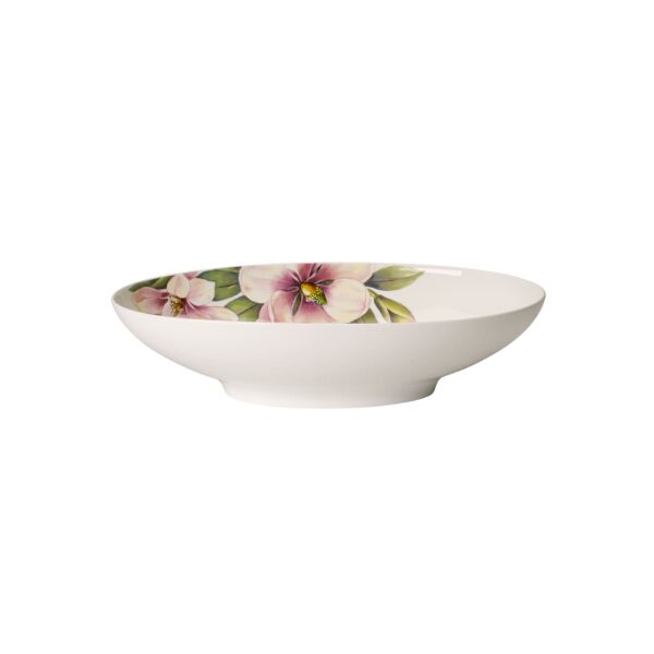 Step into the mysterious world of the Orient with Quinsai Garden. The Home decor follows the trail of Marco Polo on his travels through India and China. Combined with an Indian paisley pattern, the exotic floral sea of peonies, camellias, chrysanthemums and magnolias pays homage to his favourite city of Quinsai, now Hangzhou. This beautiful bowl is the perfect size for all kinds of side dishes, a salad or an unusual main course. Serve your dishes with a special touch.