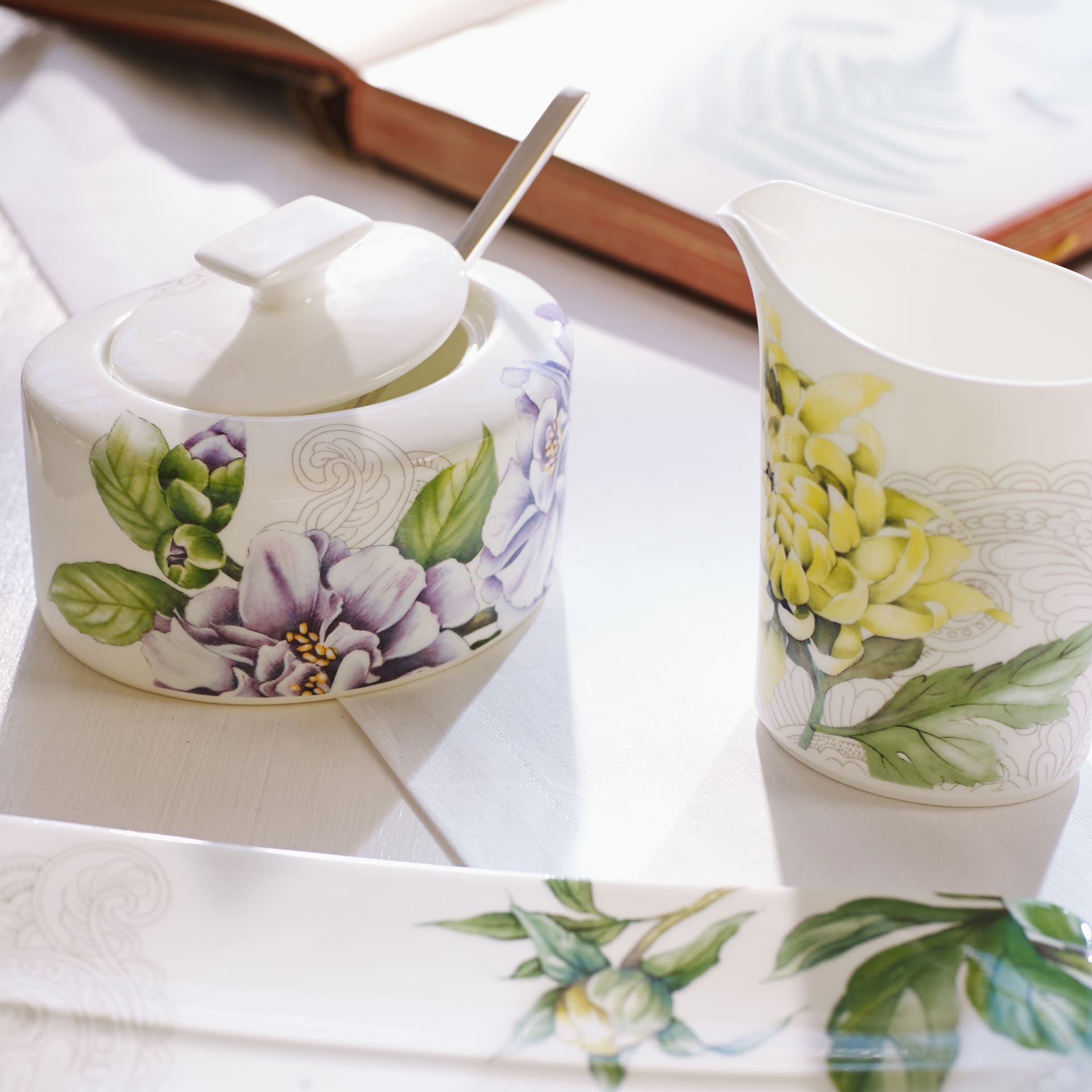The perfect sweetness. Step into the mysterious world of the Orient with Quinsai Garden. The Home decor follows the trail of Marco Polo on his travels through India and China. Combined with an Indian paisley pattern, the exotic floral sea of peonies, camellias, chrysanthemums and magnolias pays homage to his favourite city of Quinsai, now Hangzhou. The sugar bowl is the perfect addition for your table set for coffee or tea. Complements stylish coffee table settings perfectly.