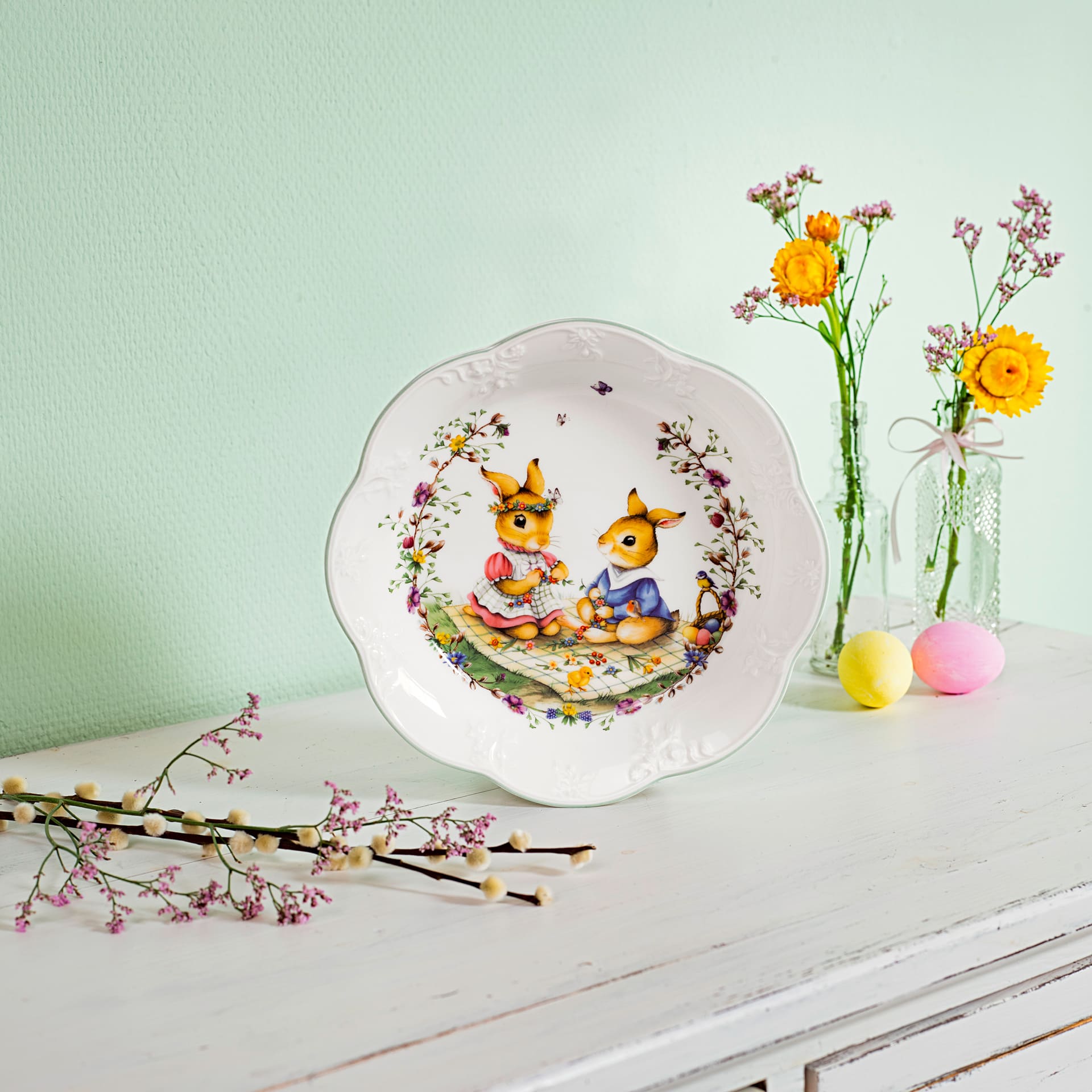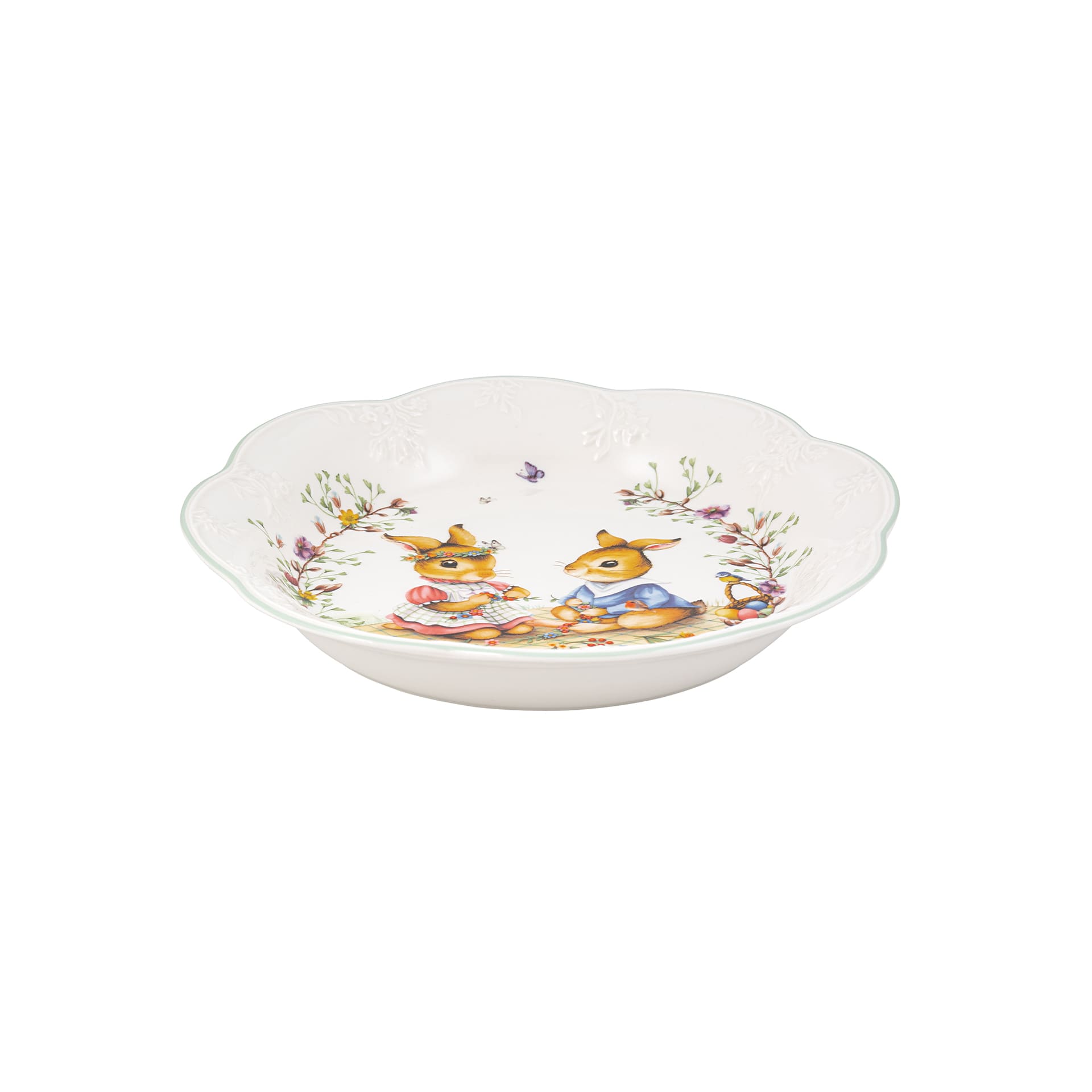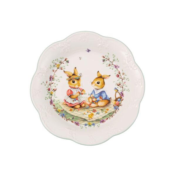 Bowl for serving food or as decoration. Welcome to a sentimental Easter with Villeroy Boch! The intrinsic motifs of our Spring Fantasy collection show special Easter bunnies flitting around a nostalgic world full of spring spirit. Ideal as the centrepiece of your Easter table, a decoration idea and a loving gift. The medium flower-shaped bowl is lovingly designed and makes wonderful Easter decoration. Celebrate Easter with nostalgically beautiful pieces from Villeroy Boch.