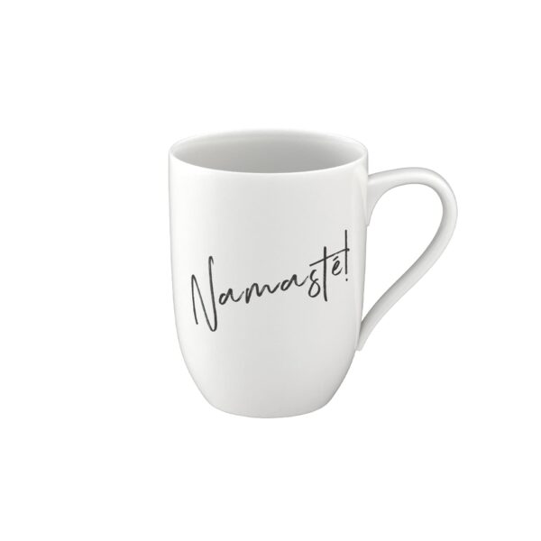 Coffee breaks with a personal message. Your mug, your message! Our popular mug now makes clear statements, whether it be for you or as a gift for a special person. The mug is printed on one side with the words Namasté. Thanks to the simple, white porcelain, it matches many collections and offers you numerous combination options. Which mottos are your favourites?