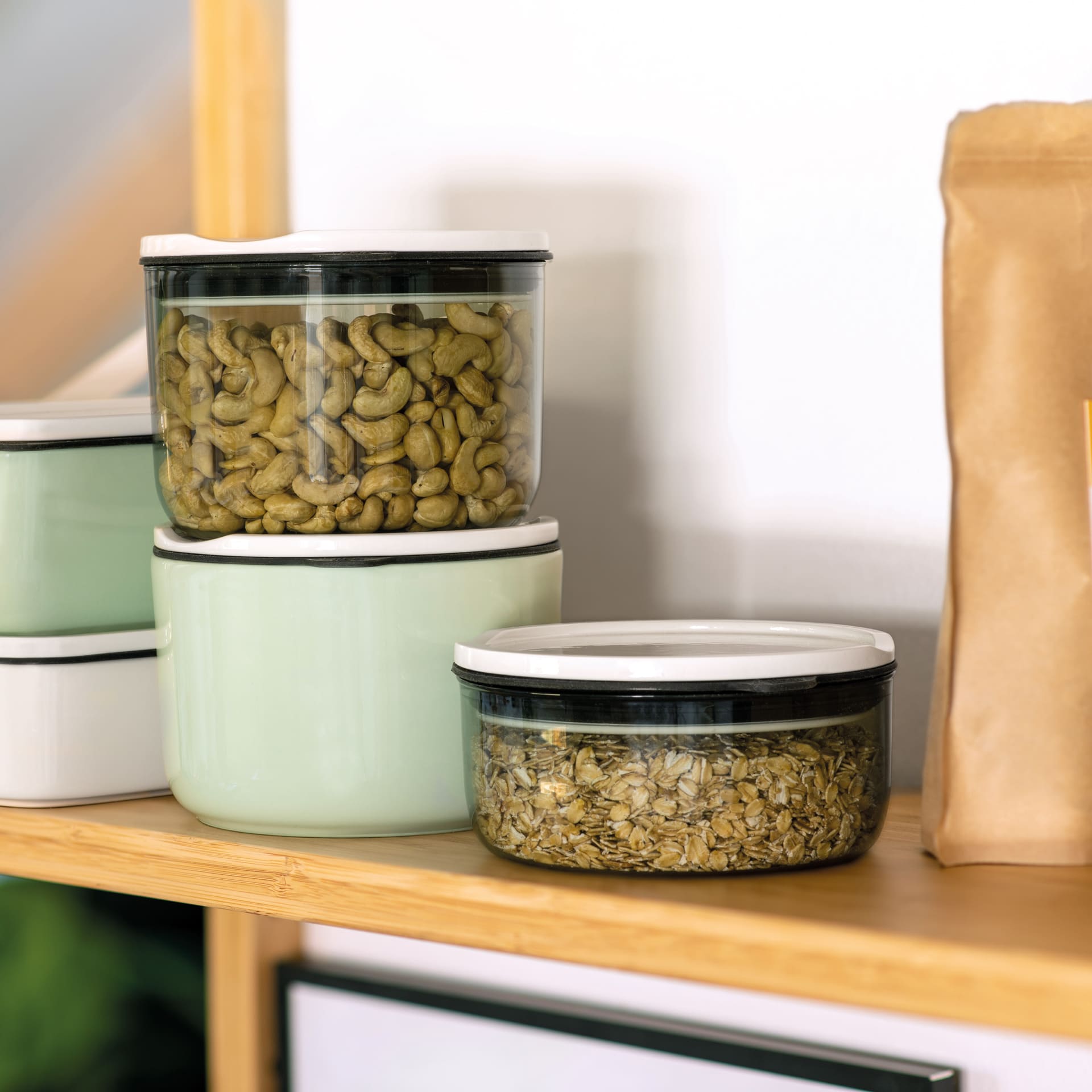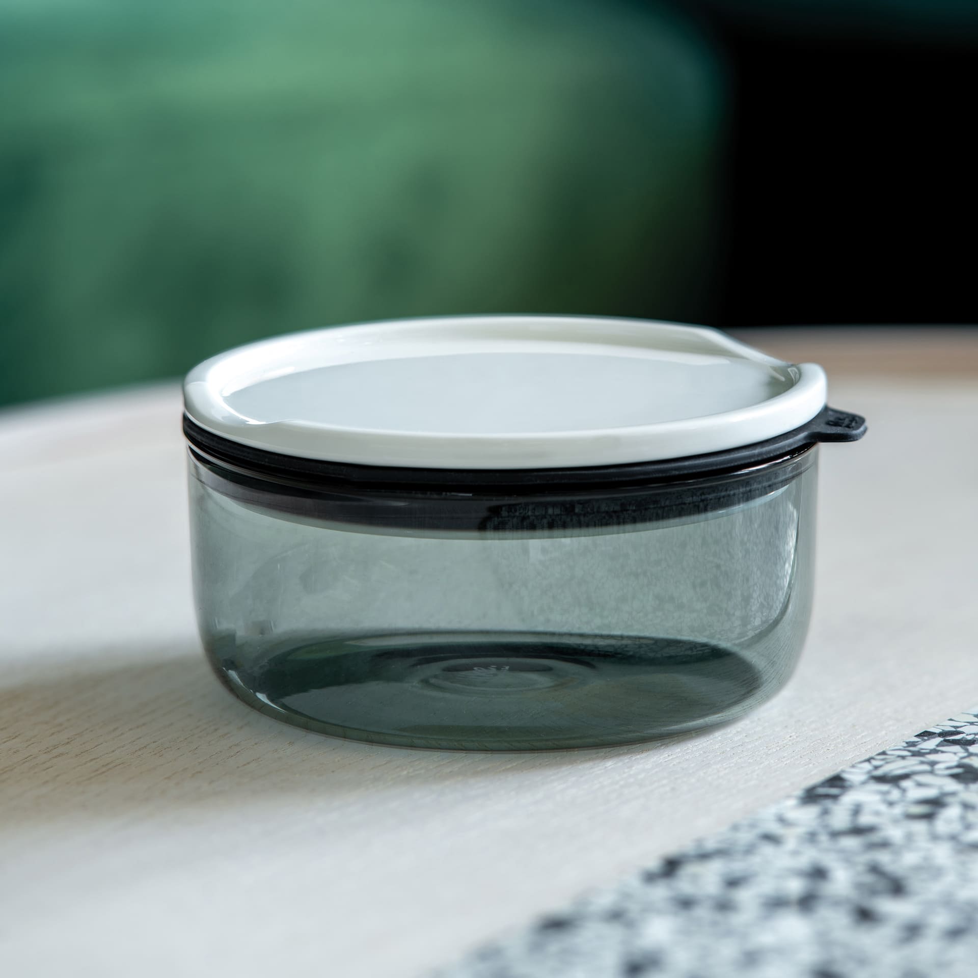 Sustainable pleasure: cool, versatile glass lunch box. The To Go and To Stay collection is the fashion-forward companion for anyone who wants to enjoy life in a green and healthy way. Whether for meal prepping, shopping in a zero-waste shop or as a storage box for home use – the different sizes ensure you will always find what you need. The cool design in trendy colours not only looks stylish. Thanks to the use of premium porcelain and robust glass, the items are tasteless, non-toxic and wont absorb stains. This makes sustainability twice as much fun. Measuring 13 x 6 cm, the round lunch box is ideal for transporting fruit or snacks. The high-quality, robust glass in combination with the silicone seal also makes it suitable for storing food or as a no-waste alternative for your shopping. Set sustainable trends.