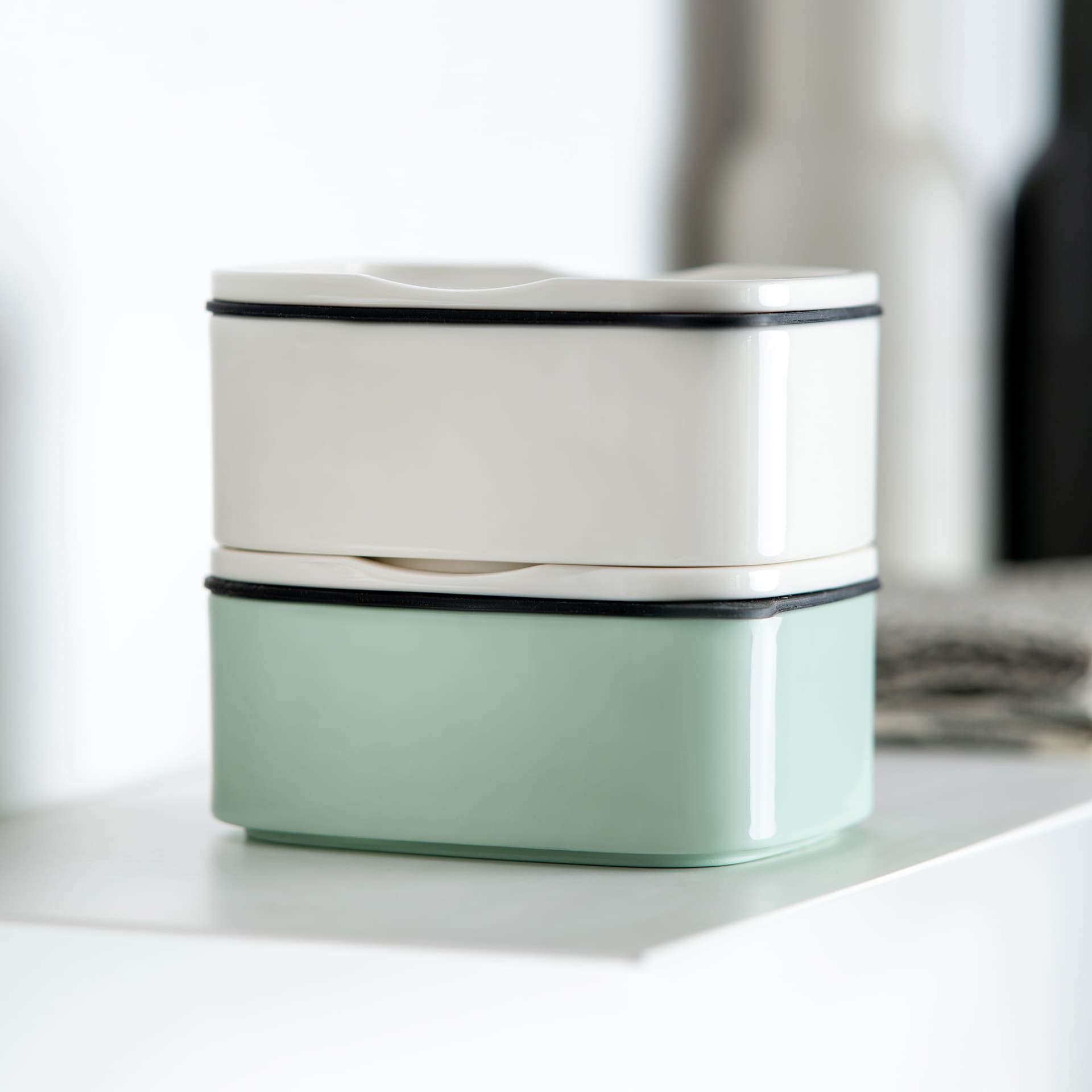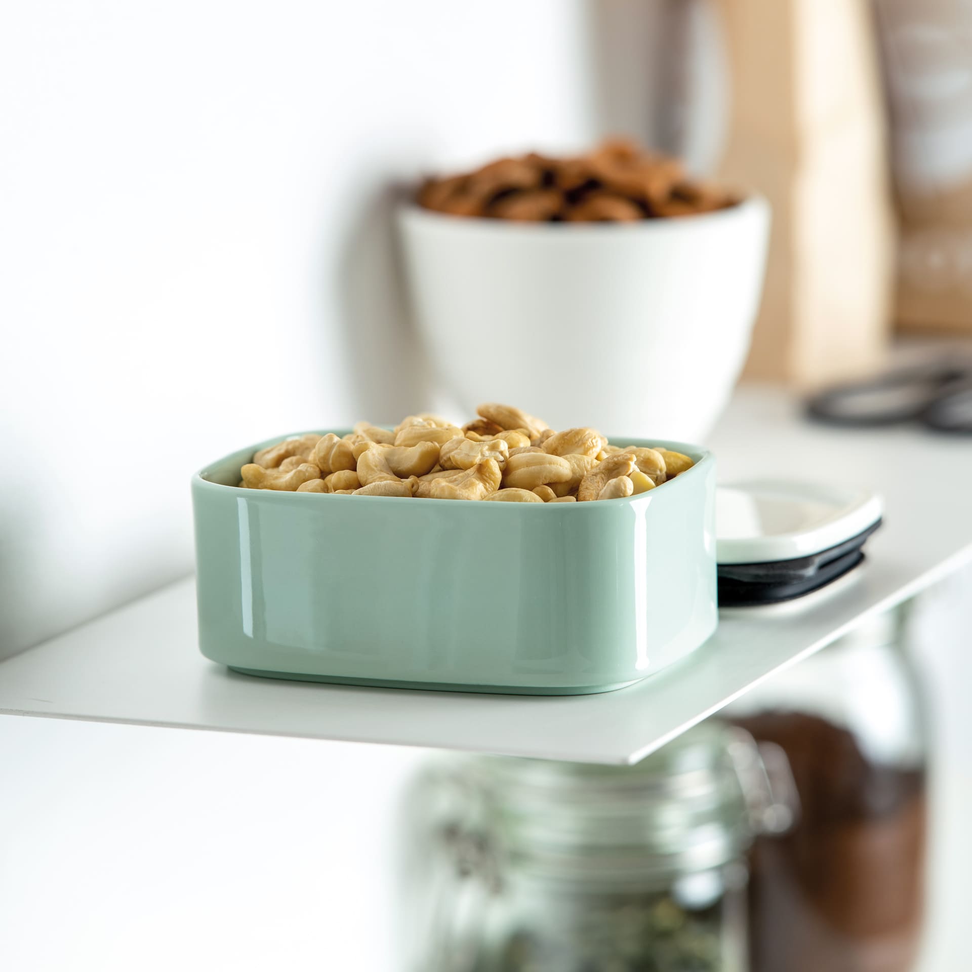 Sustainable pleasure: cool, versatile ceramic lunch box. The ToGoToStay collection is the fashion-forward companion for anyone who wants to enjoy life in a green and healthy way. Whether for meal prepping, shopping in a zero-waste shop or as a storage box for home use – the different sizes ensure you will always find what you need. The cool design in trendy colours not only looks stylish. Thanks to the use of premium porcelain and robust glass, the items are tasteless, non-toxic and wont absorb stains. This makes sustainability twice as much fun. Measuring 13 x 10 x 6 cm, the lunch box is ideal for transporting small snacks or toppings. The high-quality premium porcelain in combination with the silicone seal also makes it suitable for storing food or as a no-waste alternative for your shopping, e.g. for nuts, spices or tea.