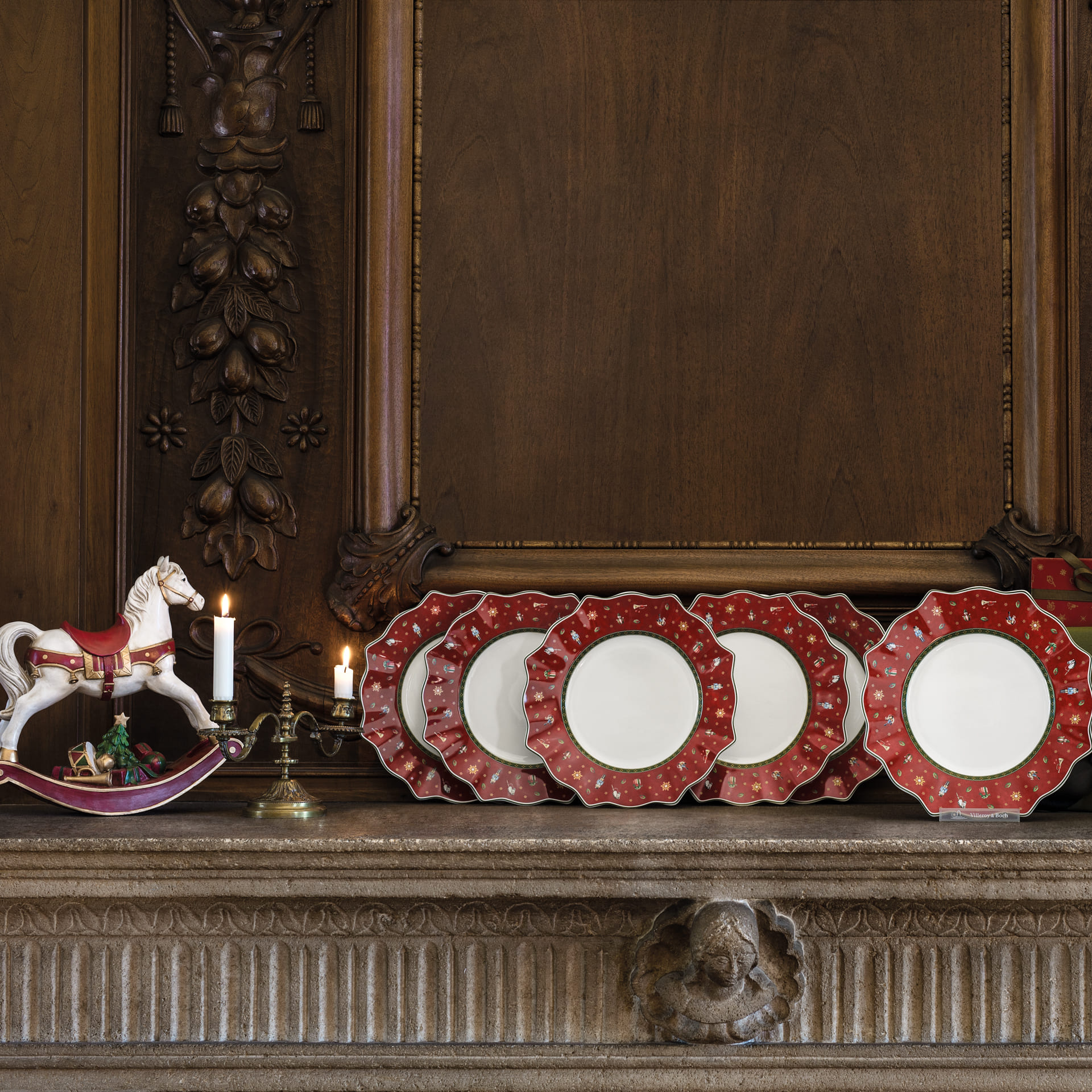 Plate for Christmas dinner. Create a nostalgic festive atmosphere in your home with the Christmassy Toys Delight collection. The crockery is adorned with playful motifs in red, green and white and brings back childhood memories. To combine, collect and give. This charming plate in red is an eye-catching feature on your festive table. Impress your guests with Christmas tableware.