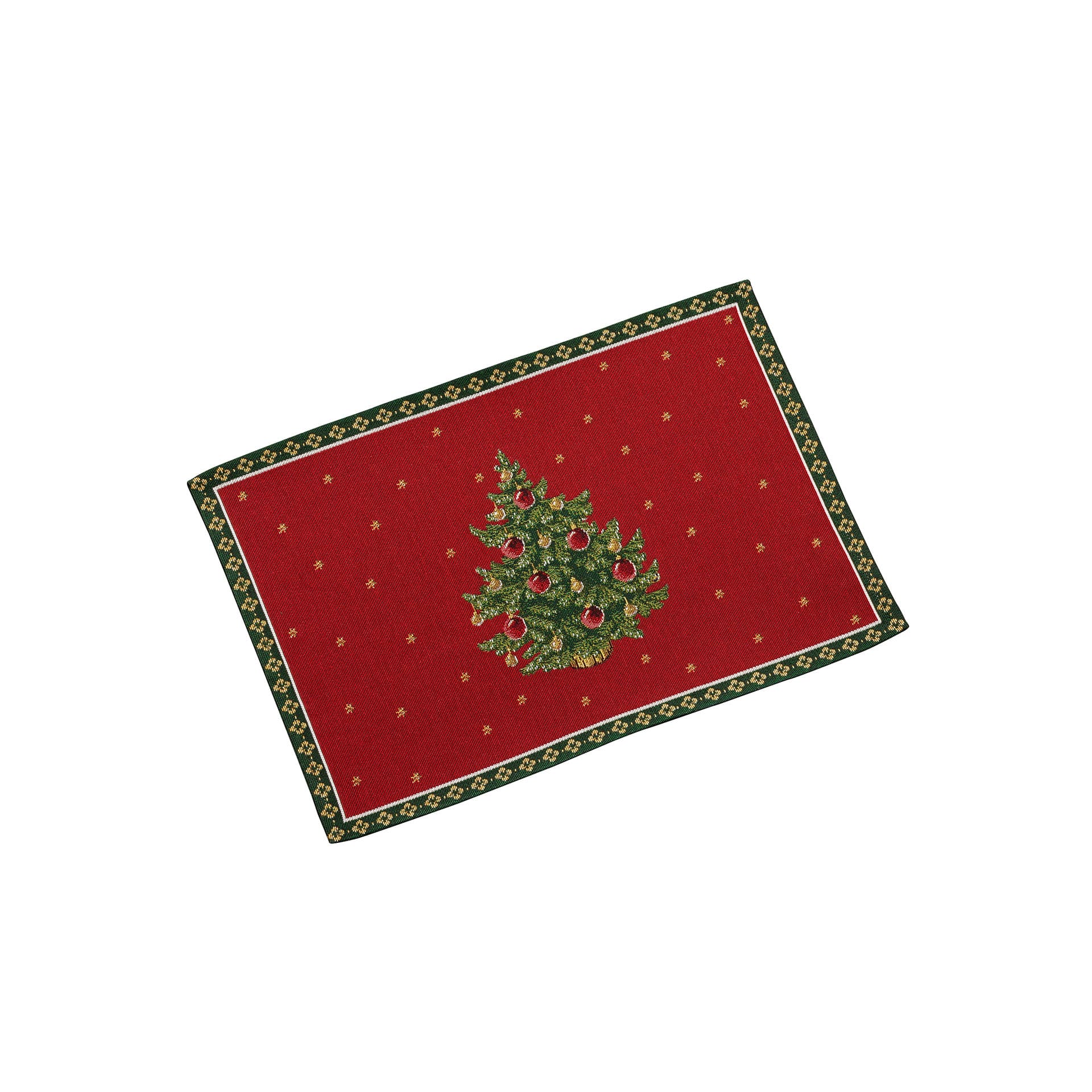 Create a nostalgic festive atmosphere in your home with the Christmassy Toys Delight collection. The crockery and matching cotton decorative accessories feature playful motifs in red, green and white and bring back fond childhood memories. To combine, collect and give. This Gobelin placemat with a Christmas tree motif lends a special charm to your festive table while adding a cheerful designer touch. Spread festive cheer at your table. Made from 70 cotton and 30 polyester