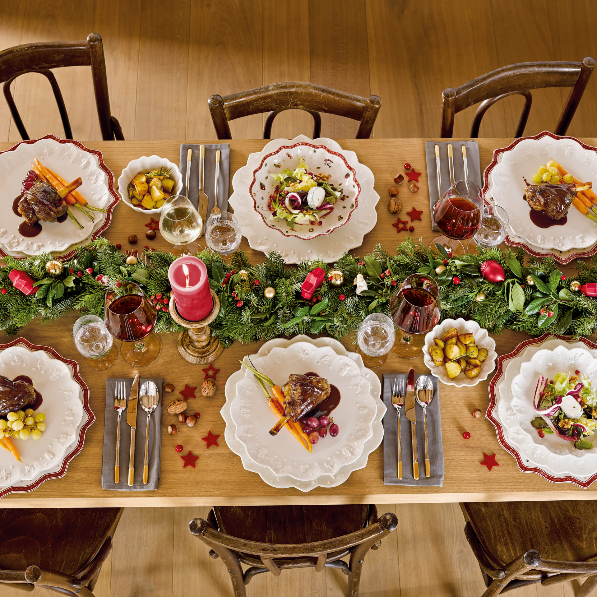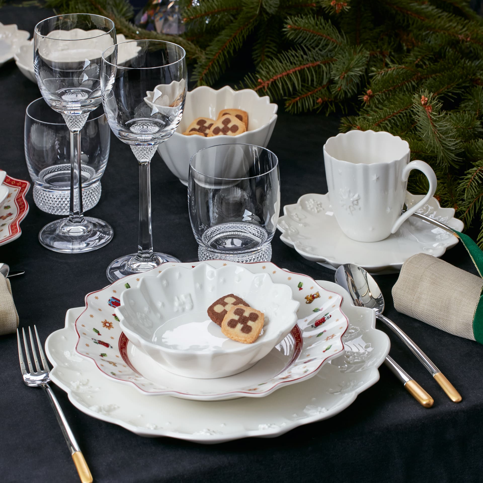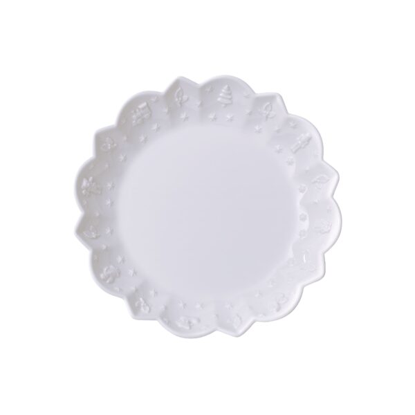 Christmas bowl for sweet treats and snacks. Toy‘s Delight Royal Classic is inspired by the shape of nostalgic paper plates, decorated with a high-quality porcelain relief. This relief is adorned by motifs of typical toys from the Ore Mountains. The pure white collection goes beautifully with the Toy‘s Delight items in Christmas colours. This large bowl is perfect for storing biscuits, fruit or pastries.