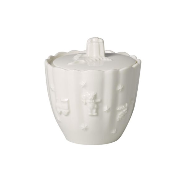 – Timeless beauty: this sugar pot comes in pure white, beautifully finished with Christmas patterns in relief.