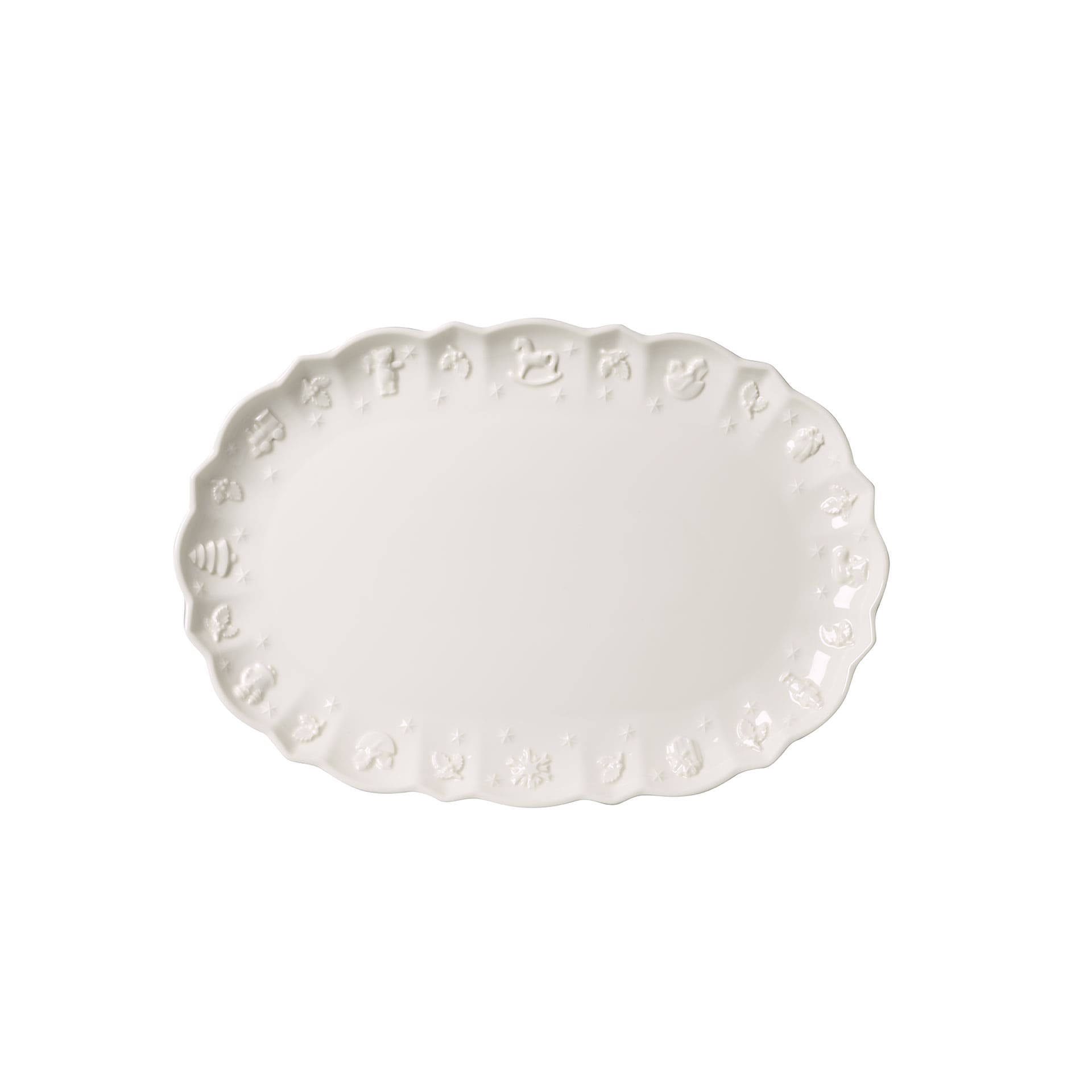 Toys Delight Royal Classic boasts stylish accessories and a classic pure white tableware range with a high-quality porcelain relief. This relief is decorated with festive motifs such as holly leaves and typical Christmas figures. The collection goes beautifully with the Toy‘s Delight items and their Christmas colours. The oval serving plate is extremely versatile, be it for side dishes for Christmas dinner or for your home-baked biscuits. It even looks wonderful as a stage for your Christmas decoration. Celebrate Christmas with beautiful pieces in a classically minimalist style.