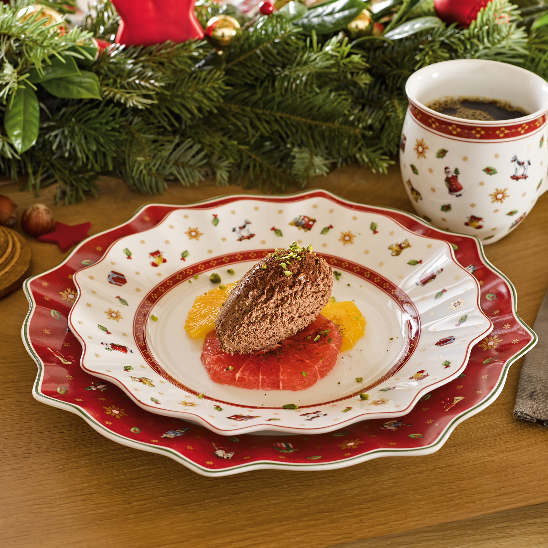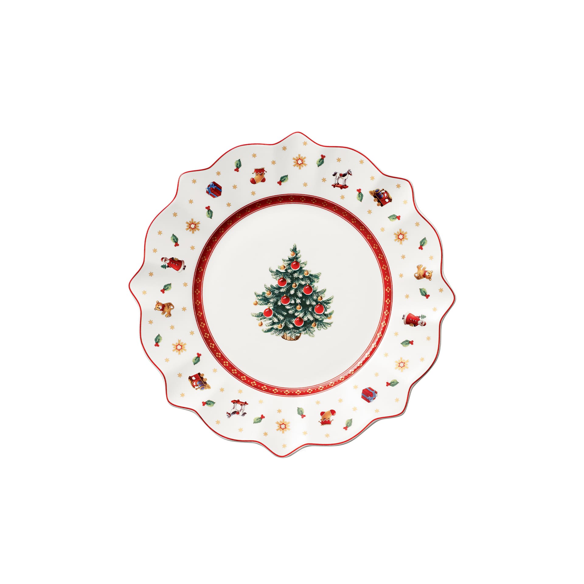 For breakfast, brunch or afternoon coffee. Create a nostalgic festive atmosphere in your home with the Christmassy Toys Delight collection. The crockery is adorned with playful motifs in red, green and white and brings back childhood memories. To combine, collect and give. This decorative plate in white is perfect for Christmas brunch or afternoon coffee and will create a cosy and reflective mood at the table. Spread festive cheer at your table.