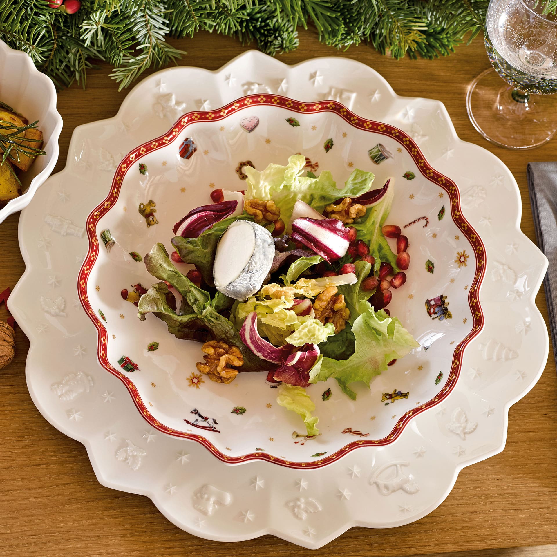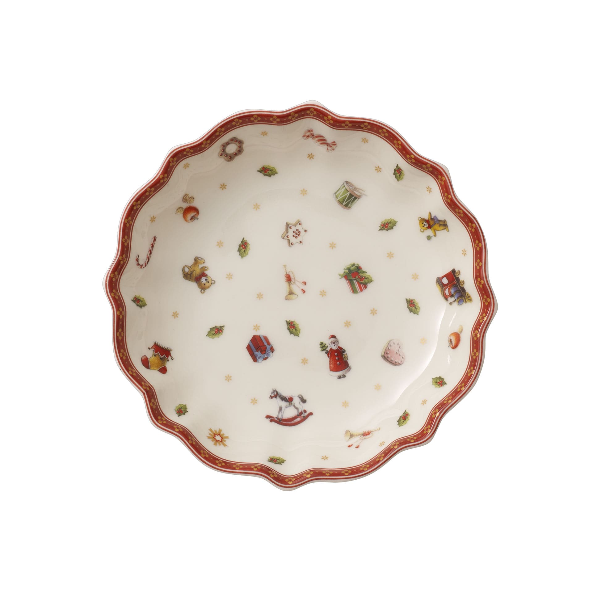 Create a nostalgic festive atmosphere in your home with the Christmassy Toys Delight collection. The crockery is adorned with playful motifs in red, green and white and brings back childhood memories. To combine, collect and give. This decorative bowl is inspired by nostalgic paper plates and perfect for storing biscuits, fruit, nuts or pastries. Add festive warmth to your home.