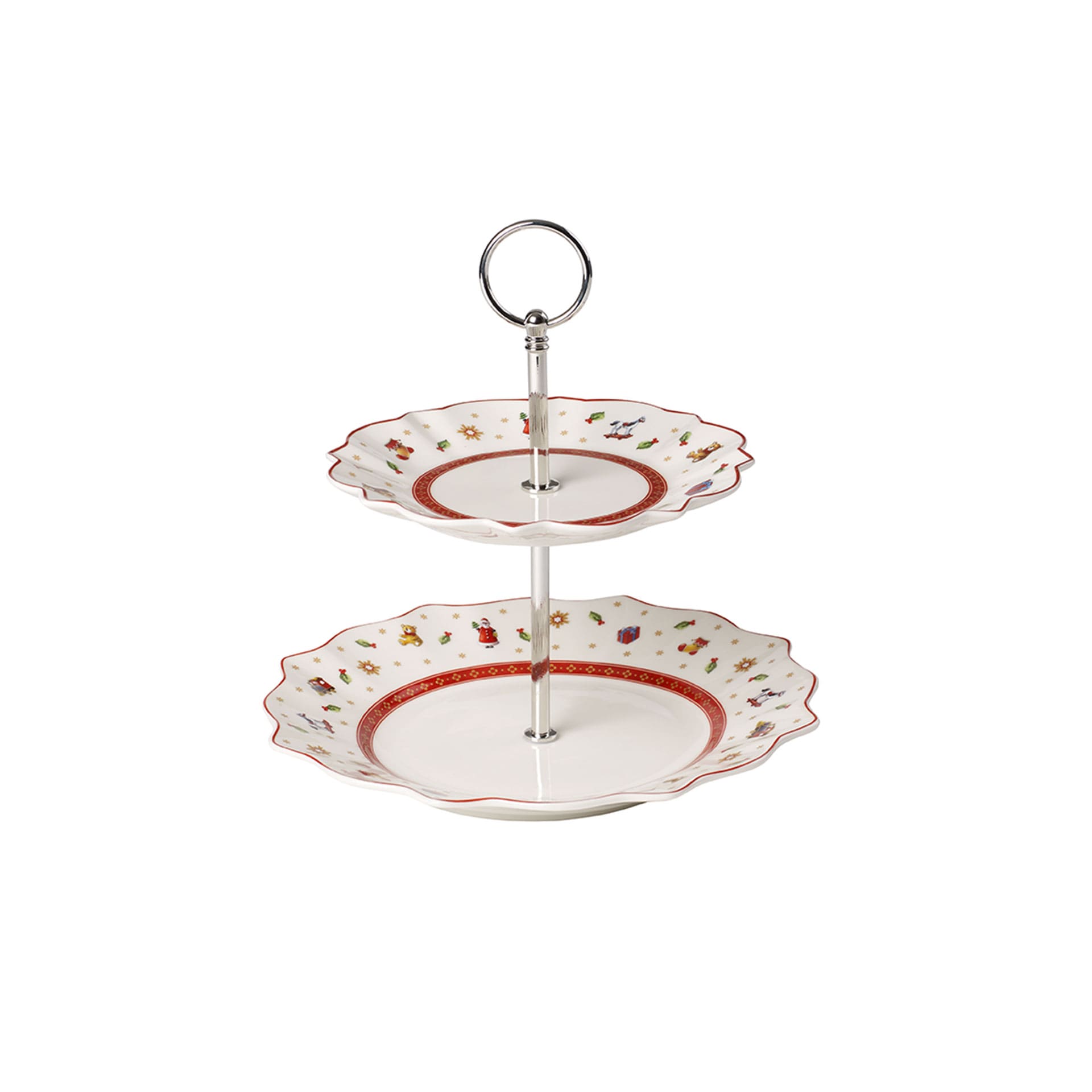 Create a nostalgic festive atmosphere in your home with the Christmassy Toys Delight collection. The crockery is adorned with playful motifs in red, green and white and brings back childhood memories. To combine, collect and give. Serve delicious food for brunch or sweet treats with afternoon coffee on the small practical cake stand. Impress your guests with something special.