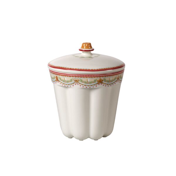 Winter Bakery Delight will whet your appetite for mince pies, eggnog and baked apples. The festive crockery is perfect for the Christmas season and the winter months thanks to its light and airy pattern. An ideal addition to your festive home, for collecting, combining or as a gift. This small porcelain jar is perfect for baking a miniature Bundt cake. Or you can use the jar to store your biscuits and protect the contents with the attractive lid. Spread festive cheer at your table.