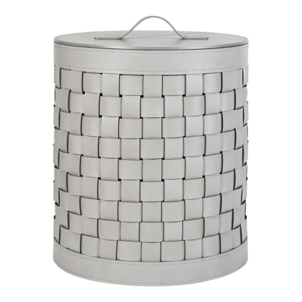 Rectangular basket, woven leather, 45x30x25 h.