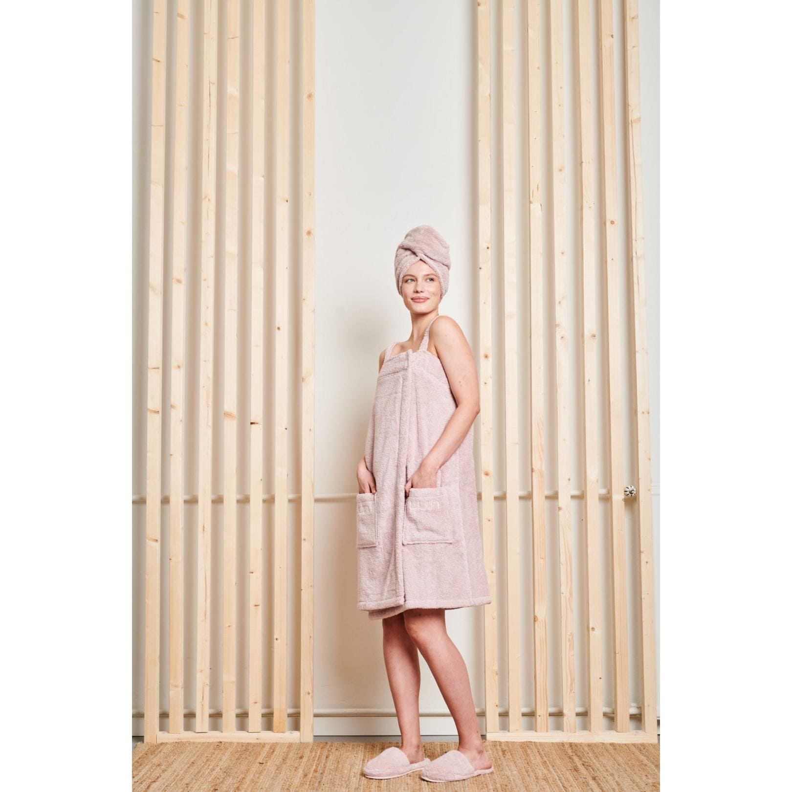 A towel can be so much more than just a towel! Sometimes you just want to relax and enjoy the moment after a nice bath or shower. Our Spa Dress is a great innovation as it really works perfectly as a towel and then stays on just like a normal dress with straps. The Spa Dress is attached with hidden snappers and the elastic back side makes it pleasurable in use. Probably the best thing of all is though the luxuriously soft, plush and water-absorbent Luin Living Signature towel material.