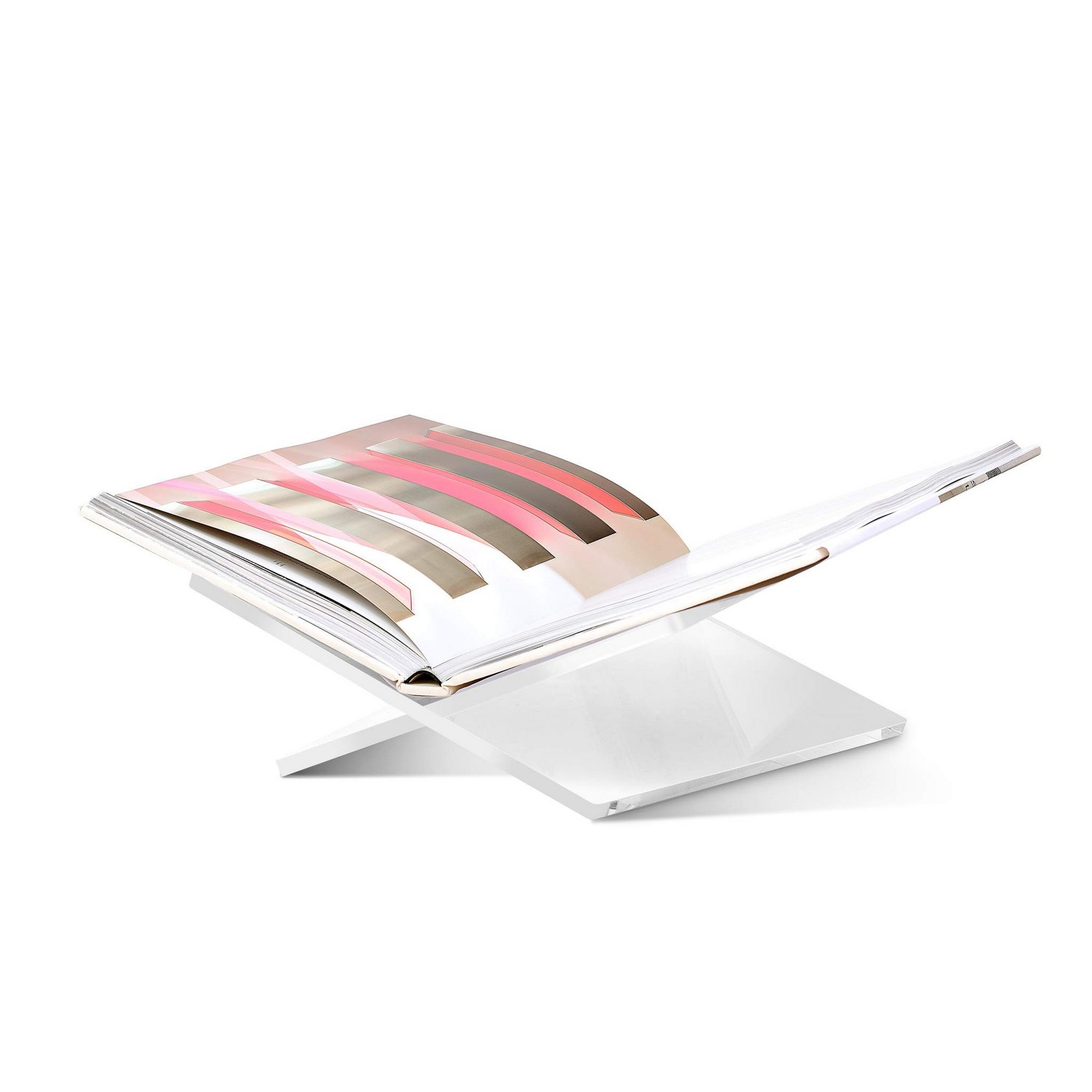 Coupling an effortless assembly with the ability to showcase every collection from Icons to Ultimates, the Assouline A Bookstand is as elegant as the titles it holds. Designed by Alex Assouline, the luxe stand, with an engraved Assouline A logo centered on both panels, comes in black, red, or clear acrylic.