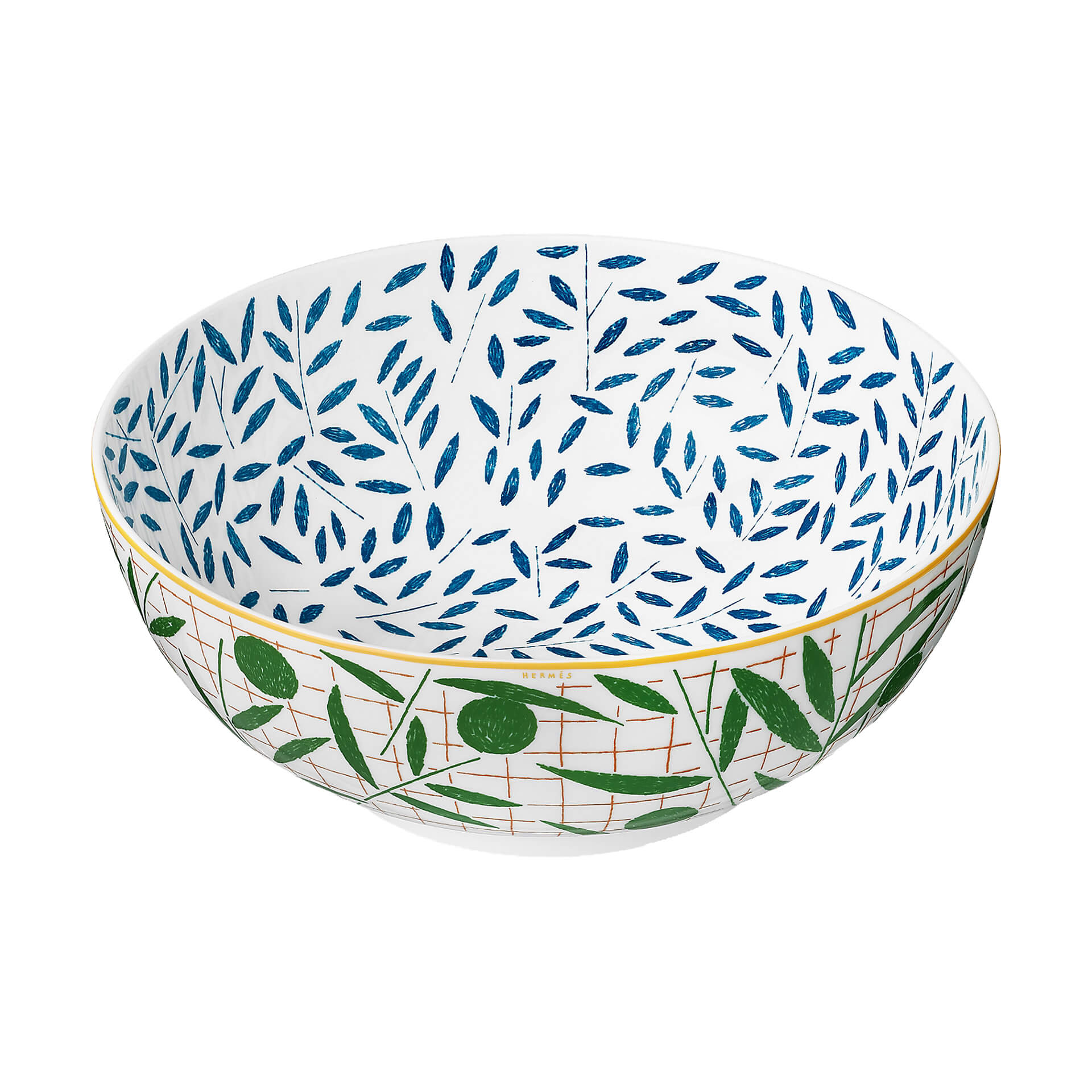 Salad bowl from A Walk in the Garden collection. In this collection of porcelain pieces, ranging from plates to bowls to teapots, Hermès looked to the art world and teamed up with Nigel Peake, known for his geometric sketches and use of vibrant color. The collection, aptly named A Walk in the Garden celebrates the magic of springtime and all the colors that come with it. Nigel Peake’s freehand designs, with his use of repeating floral motifs, are equal parts quaint and modern.