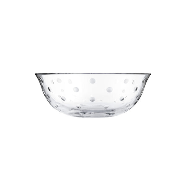 Bubbles Bowl. Vibrant and sensual, designed as part of a vast service of shapes and uses, from tableware to bar patterns, Bubbles reinvigorated the art of creation of clear and coloured crystal within Saint-Louis. A mischievous stack of crystal marbles on the stem and bubbles, dotting the parison, are the hallmarks of this original service.