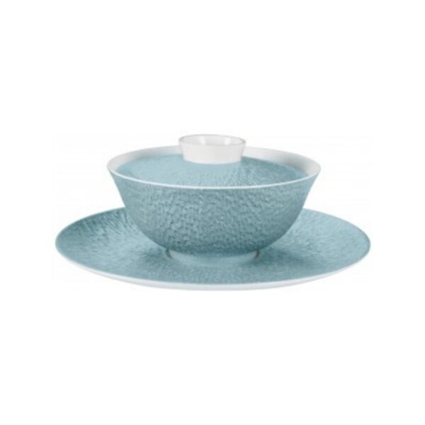 A vigorous, precise relief is inspired by nature and reinterpreted on a very flat contemporary plate. A line of plates to be completed with dishes, star cups, salad bowls and pieces for serving tea and coffee, for an inventive, refined collection. Have fun with this collection’s manifold recipients, which will stimulate your creative instincts and offer a vast range of choices for presenting your dishes. Available with gold or platinum trims. It is also available in a palette of 10 hues in earthy, vegetal and mineral colours, and in a precious yellow gold. Light plays over the shimmering glaze of the surface, with iridescent pigments delicately superposed on a matt background.