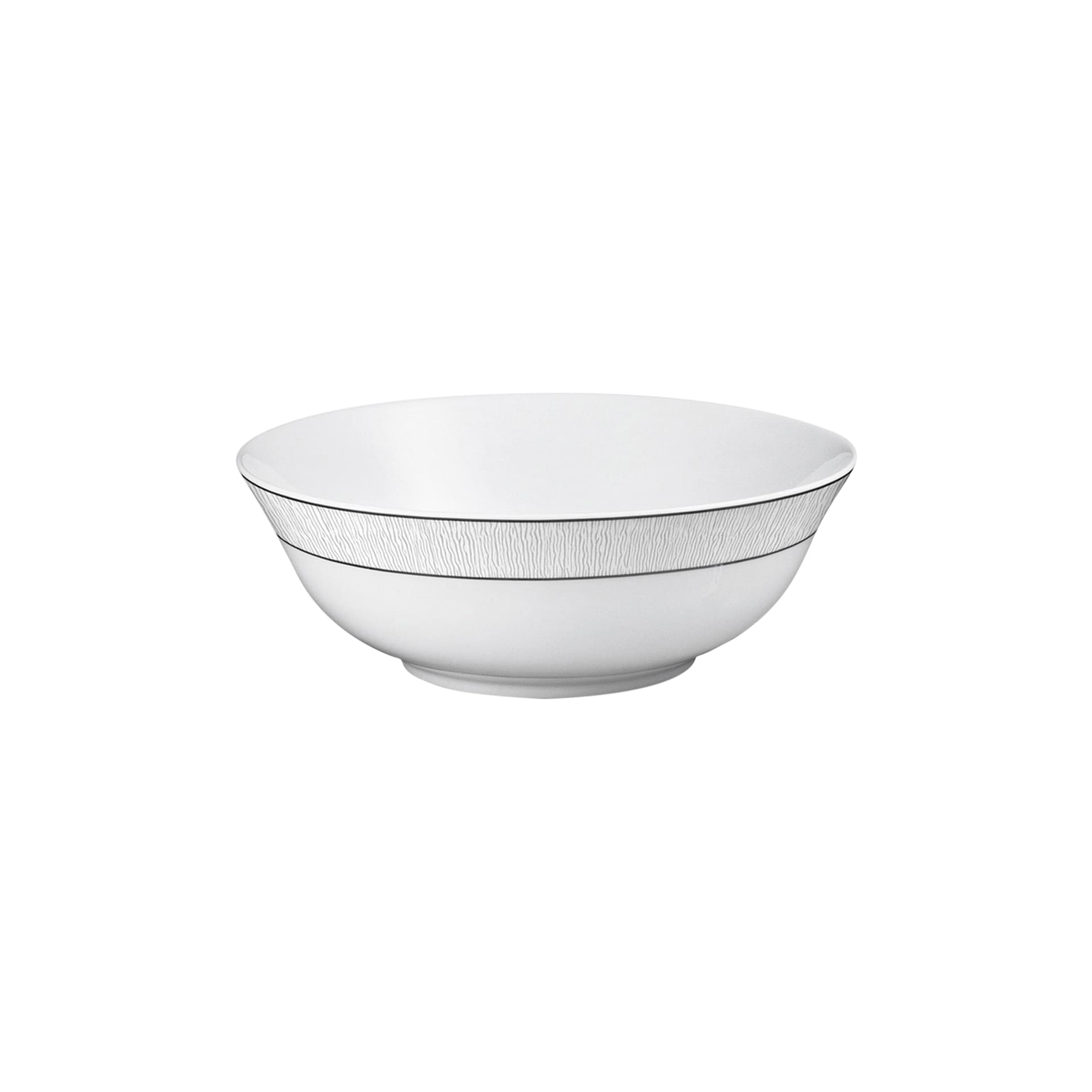 Dune salad bowl. Ingenious interplay: the attraction of the Dune dinner service lies in the enchanting relief structures. Nature provided the example on which the fluted textures were modelled. The patterns that are sculpted on a sandy beach by the waves inspired the imagination of the porcelain designer. Presentation plates chargers, dessert plates and saucers have a wide platinum-coloured rim.