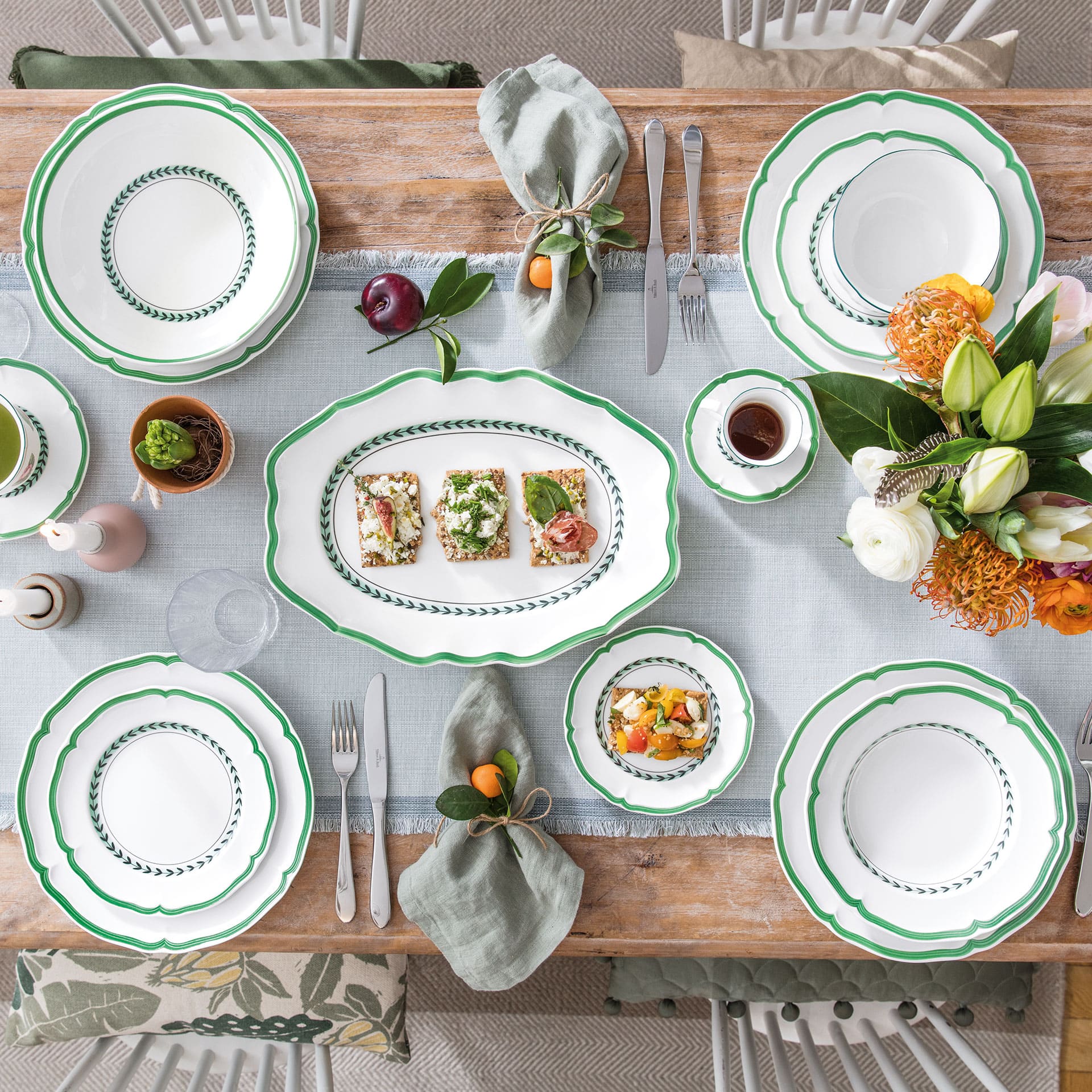 Round bowl for salad and side dishes. French Garden has always stood for summer freshness and French joie de vivre. The Green Line version gives the cosy country house style a modern touch. Serve salads, soups, rice dishes or desserts in style in this practical bowl from French Garden Green Line at any occasion. Discover French country house style with a fresh look.