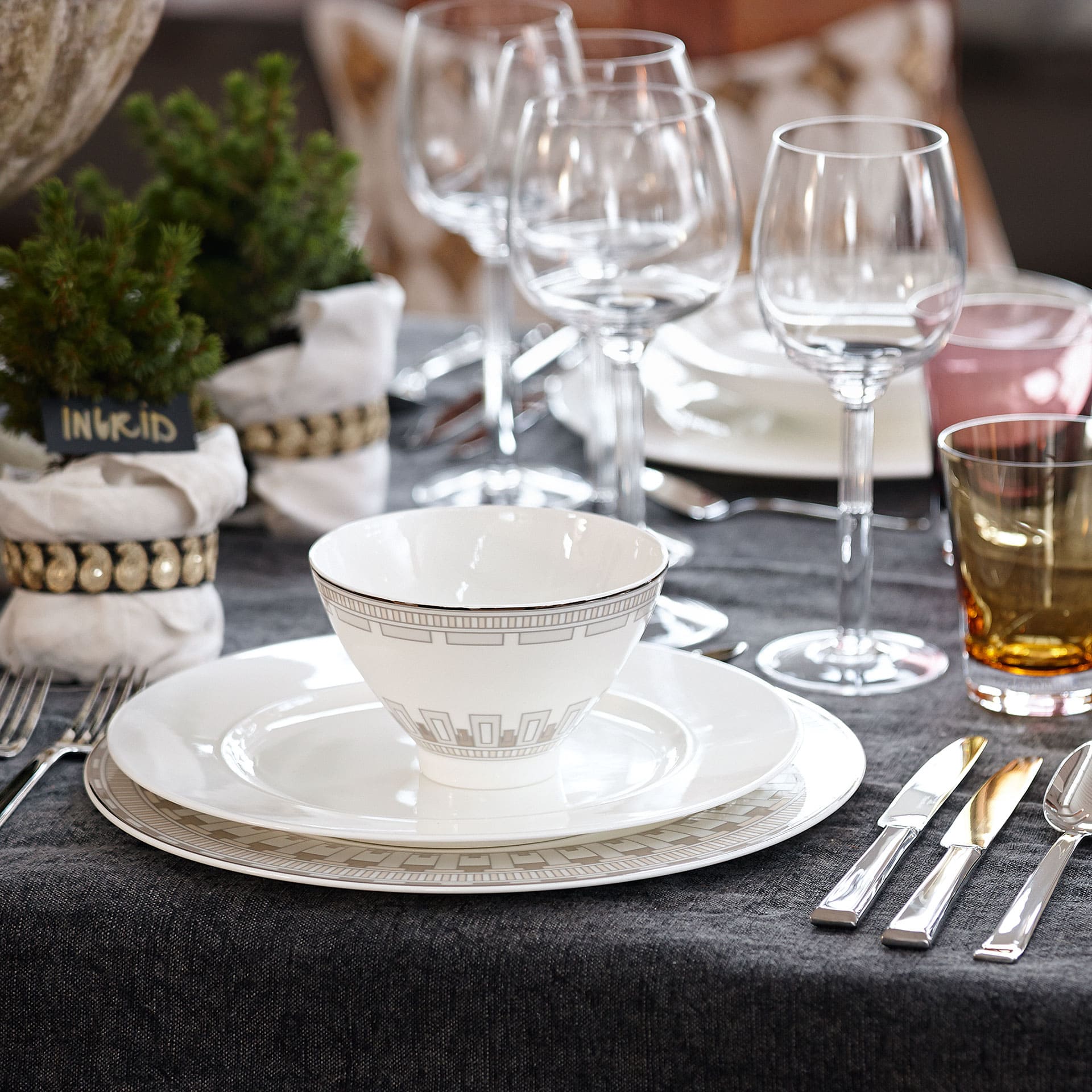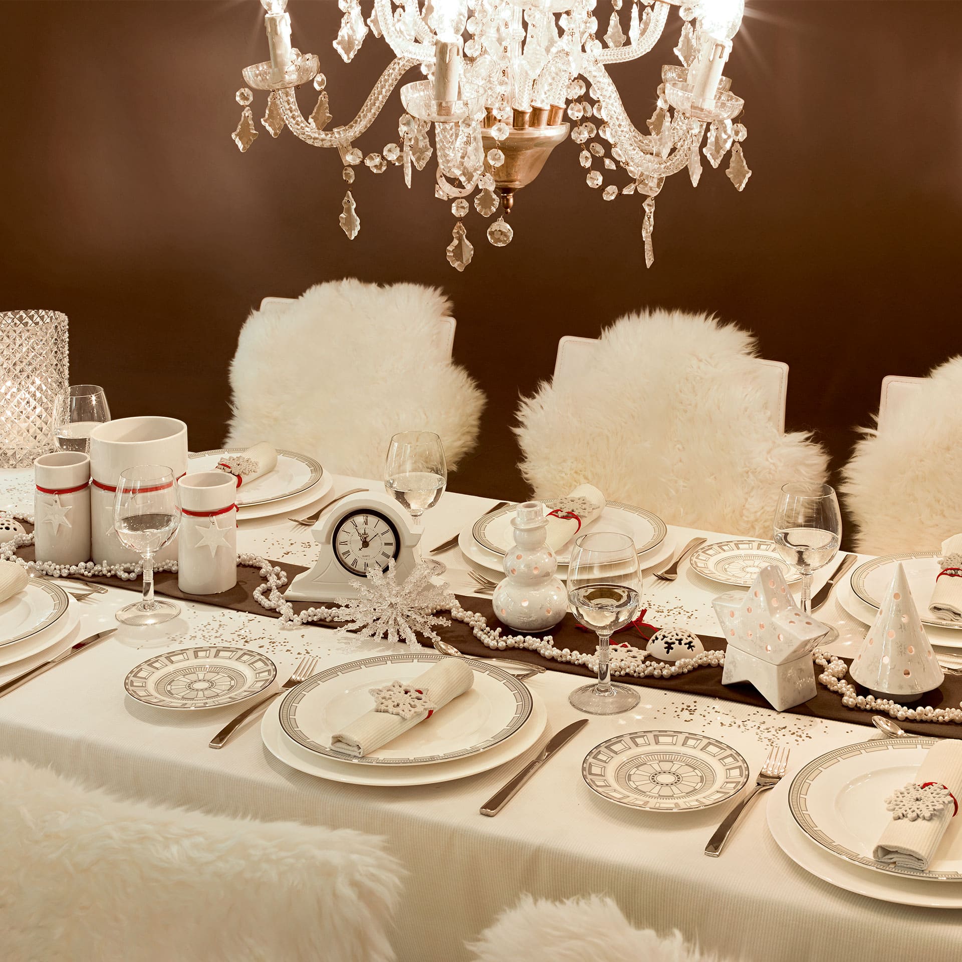 This salad bowl forms part of la Classica Contura, the decorated option of the pure white collection la Classica Nuova. Inspired by domes and rotundas the Home decor underlines the clear design language of the tableware with fine lines and graphic patterns. It can be used alone but can also be wonderfully combined with the white version. To complete the table-settings a selection of matching accessories has been developed: glass candle stands in two different sizes with matching candles, and coordinating knife rests and napkin rings, also of glass.