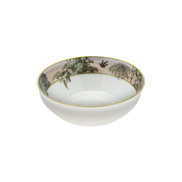 Le Brésil design by Zuber Manufacturer Individual salad bowl. Exotic birds with colourful feathers, flamingos and beautiful vegetation adorn the Le Brésil dinnerware by Haviland. You will find yourself dreaming of distant shores and of journeys to exciting countries. Le Brésil from Haviland offers a superb panorama of an exotic animal and plant world framed in rims of fine gold.