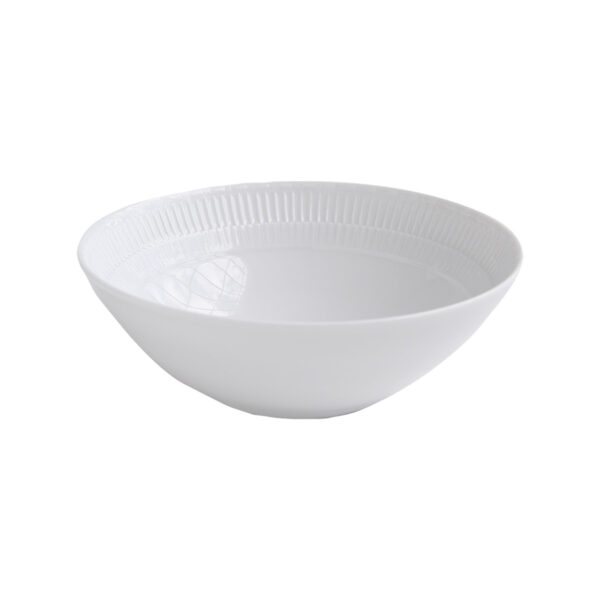 Cereal bowl from Louvre collection. The motifs engraved on the pieces that make up this white service create a stylish catalogue detailing the various periods of French architecture from the Renaissance through to the Second Empire which characterize this palace.