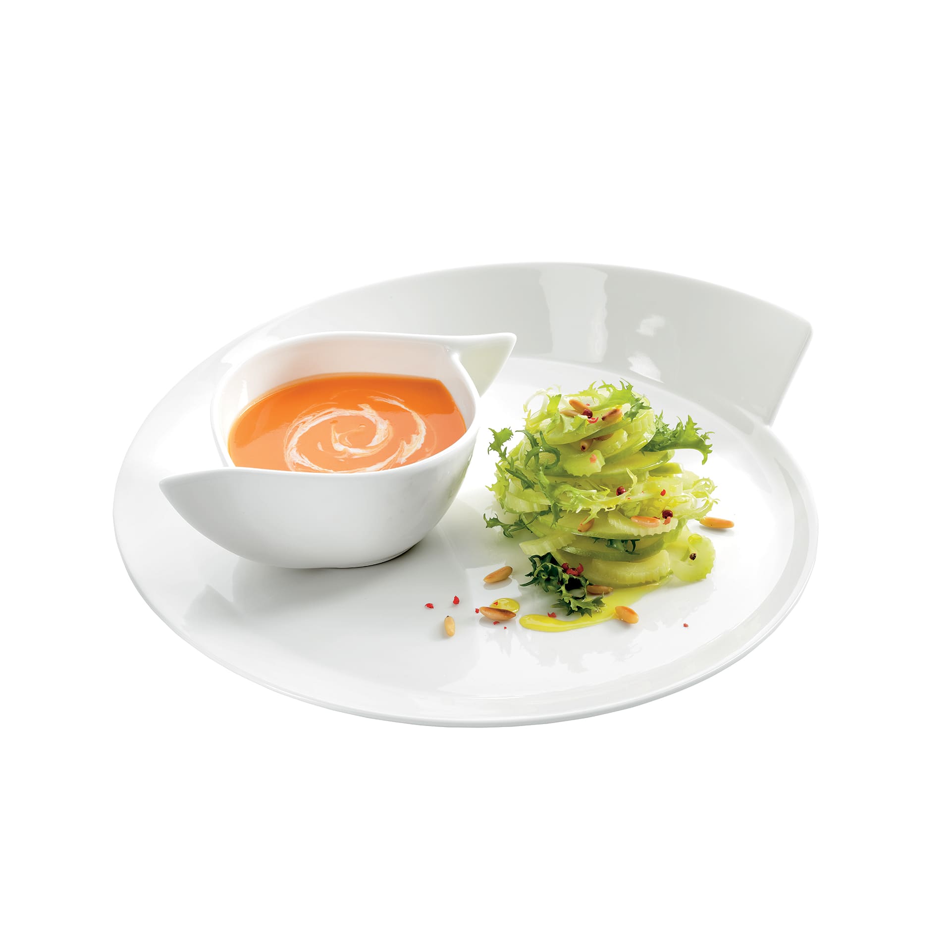 Curved soup cup for the starter or main dish. The NewWave collection boasts an asymmetrical shape and curving lines. Awarded the “Trend Dish of the Year”, the decor has been a bestseller from the very start and is a stunning centrepiece on any table. This pretty soup cup is a sophisticated way to serve soups or stews, whether as a starter or a main dish. Enjoy delicious soups in a sophisticated way.