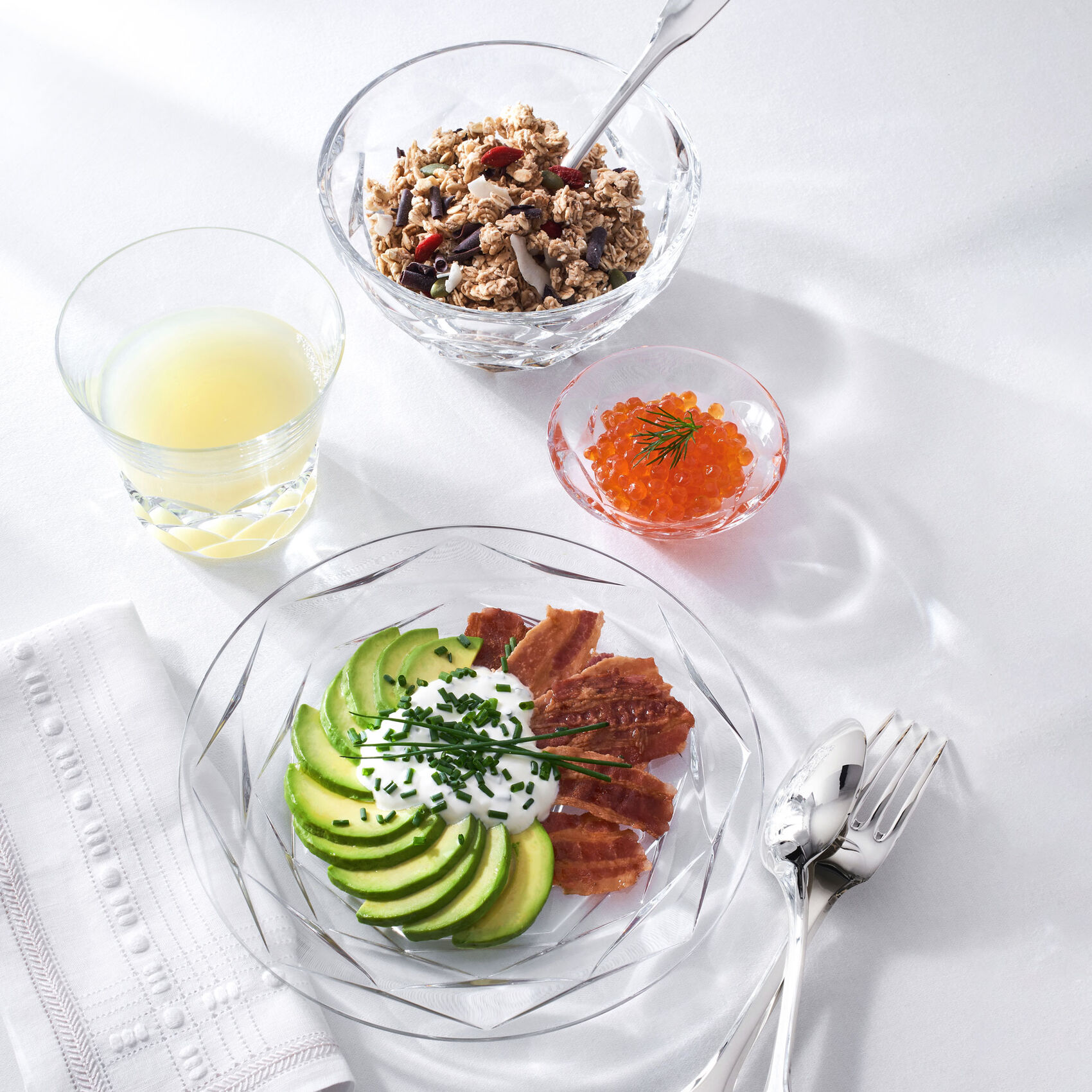 With its modern design and hypnotic light effects, the faceted cut Swing cup makes your table vibrate.